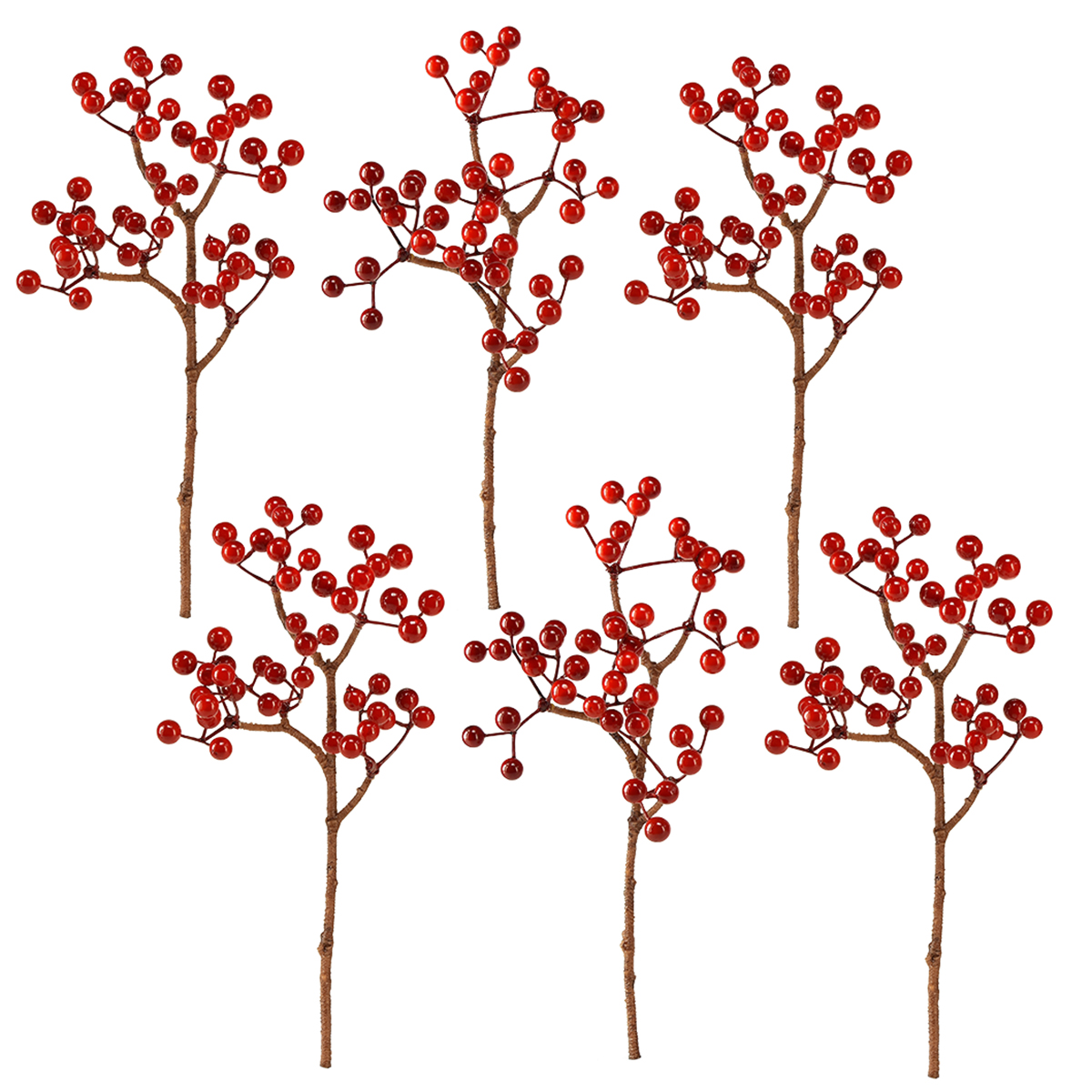 Lyse røde bærgrener – ideell for festdekorasjoner, 30 cm – sett med 6