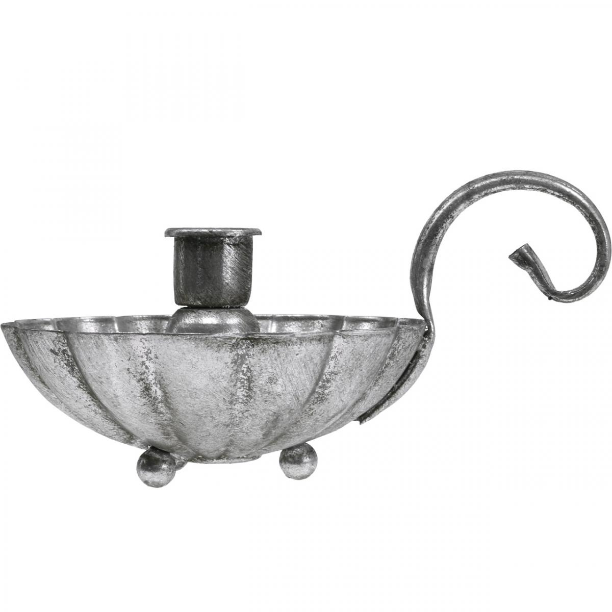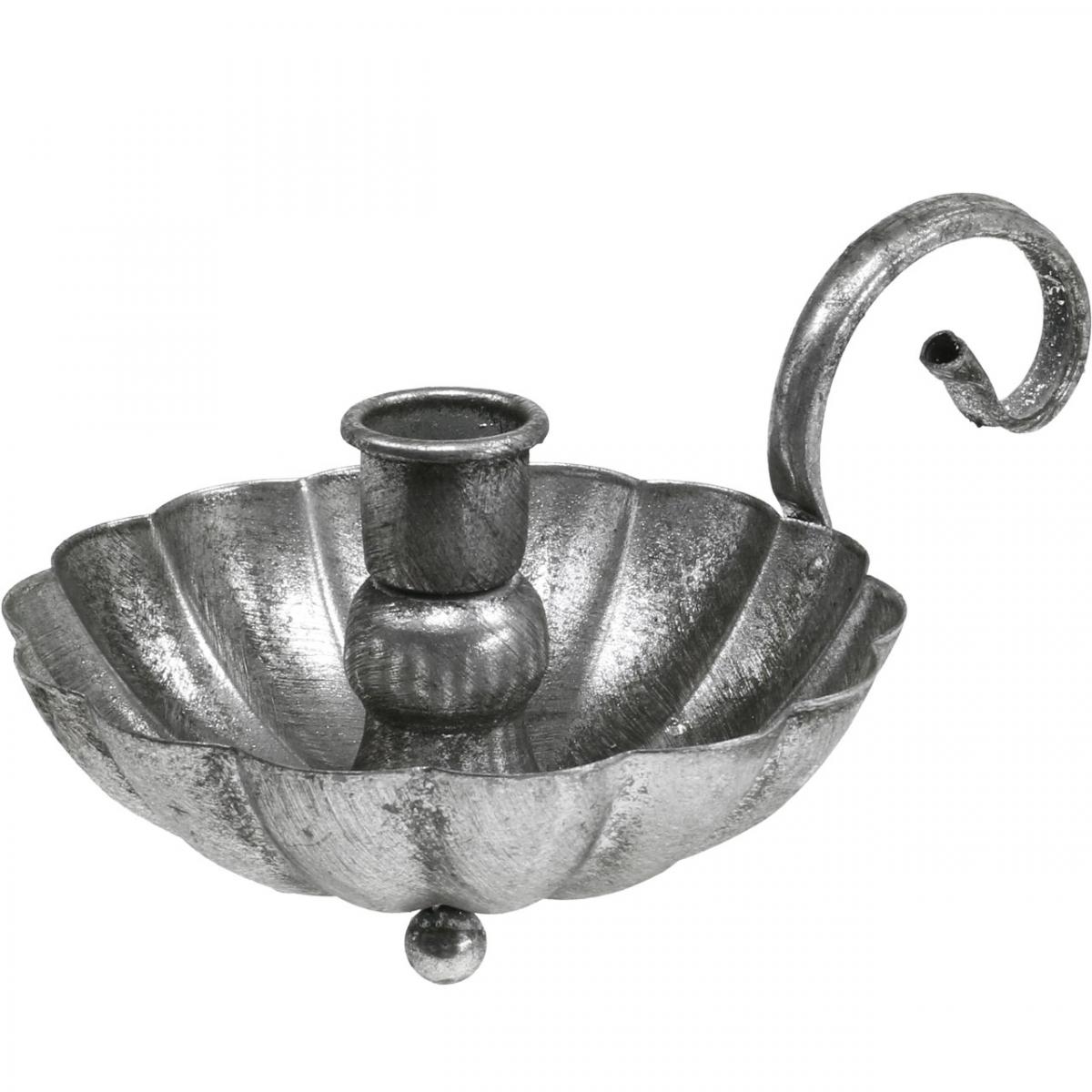 Produktnavn: Lysestak sølv lysskål med håndtak H9,5cm