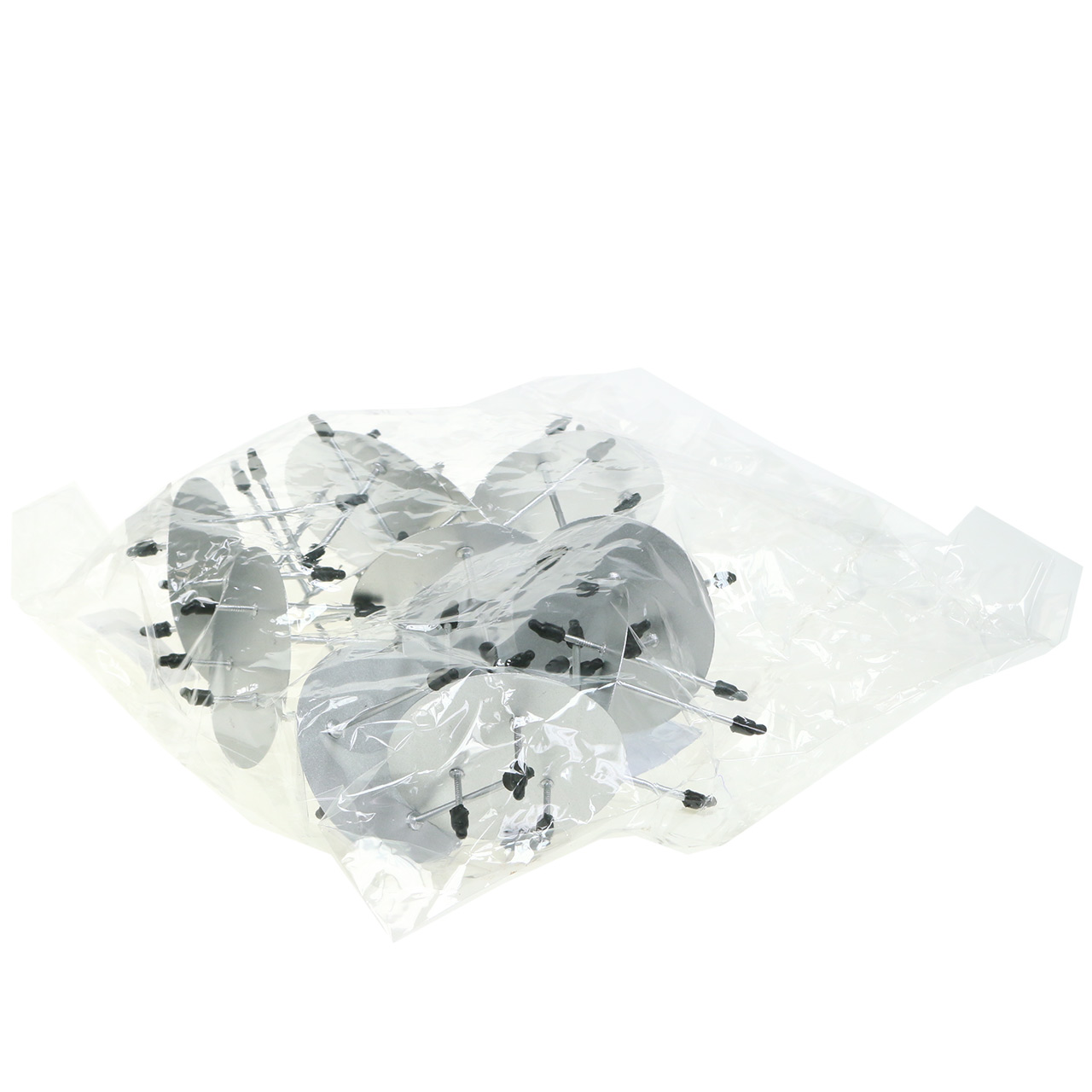 VIANA lysestake i sølv har en total høyde på 7,5 centimeter og en diameter på rundt 6,5 centimeter. Stearinlyset er omtrent 2,5 tommer, mens stikkpiggene er omtrent 5 tommer lange. Pakken inneholder 12 av disse vakre lysestakene for et blomsterarrangement.