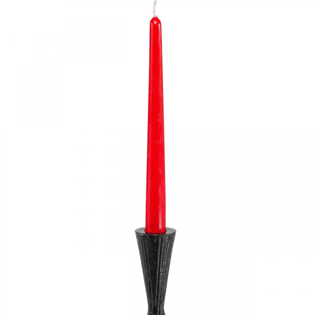 Lysestaken er støpt av metall og har en filtbeskytter på bunnen. Holderen passer akkurat til et pinnelys. På grunn av høyden er den sorte lysestaken ideell for et lavt salongbord eller sidebord, men er også svært effektiv i borddekorasjoner med stearinlys.