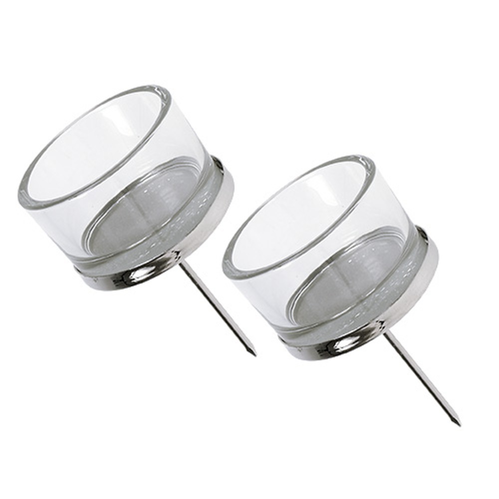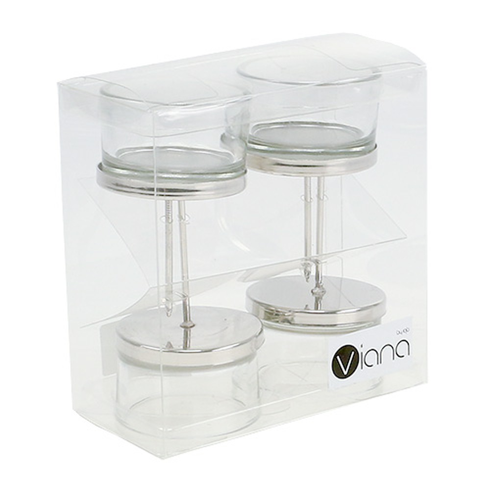 Lysestaken i sølv med glass tilbys som et sett med 4 stk. Hvert stikkontakt har en høyde på omtrent 8,5 centimeter, hvorav pluggspissen tar opp rundt 5 centimeter. Den indre diameteren på glasset er omtrent 4,5 centimeter og den ytre diameteren er omtrent 5,2 centimeter.