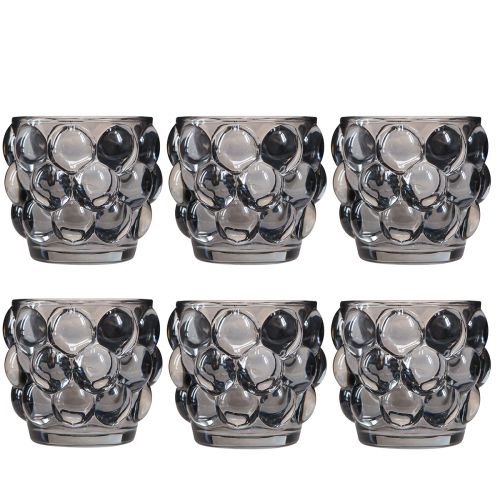 Lysholder glass telysholder grå Ø7cm H7cm 6 stk