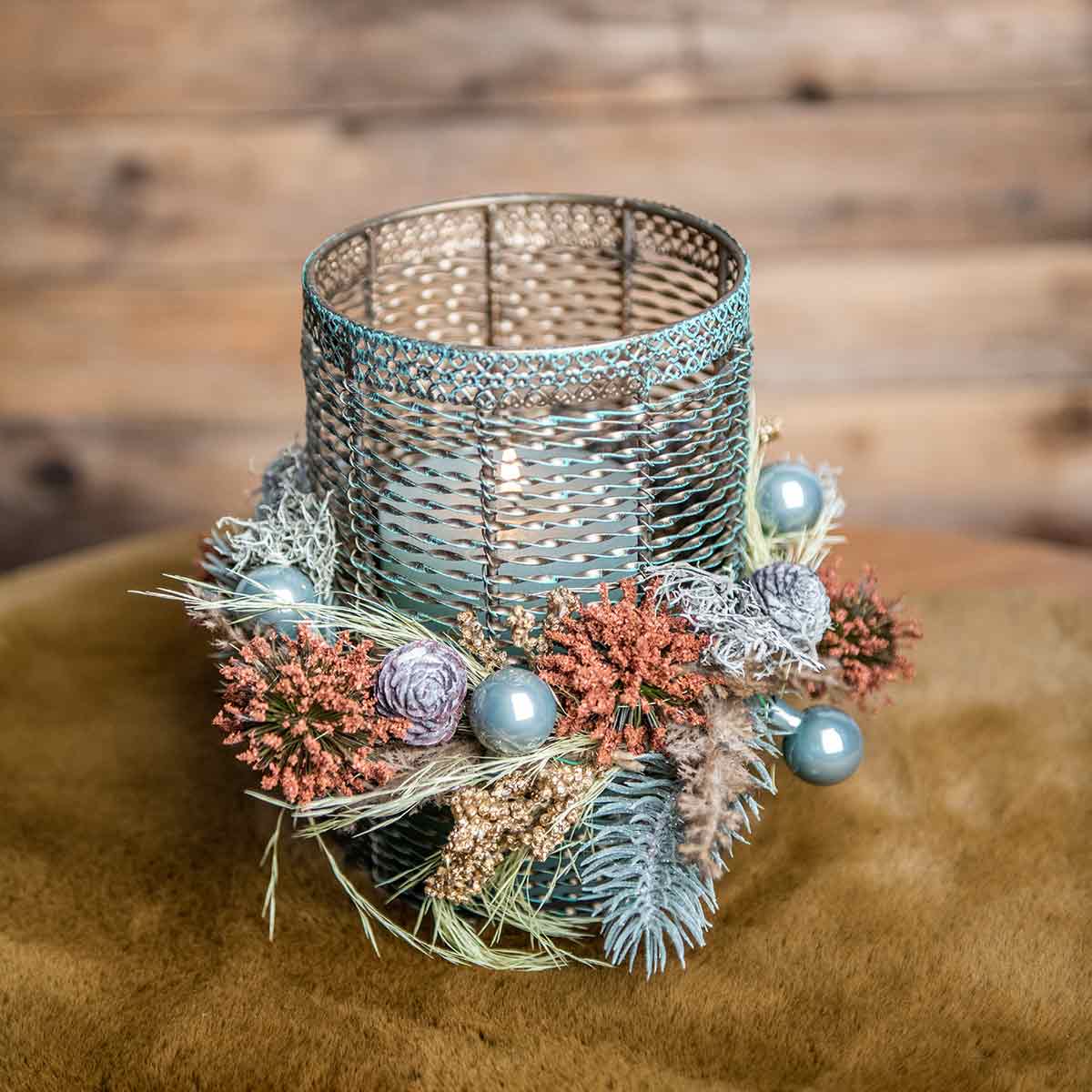 Telys og stearinlys kan plasseres på bunnen av lysestaken. Da skimrer stearinlyset imponerende gjennom de mange små åpningene og skaper et atmosfærisk lys.