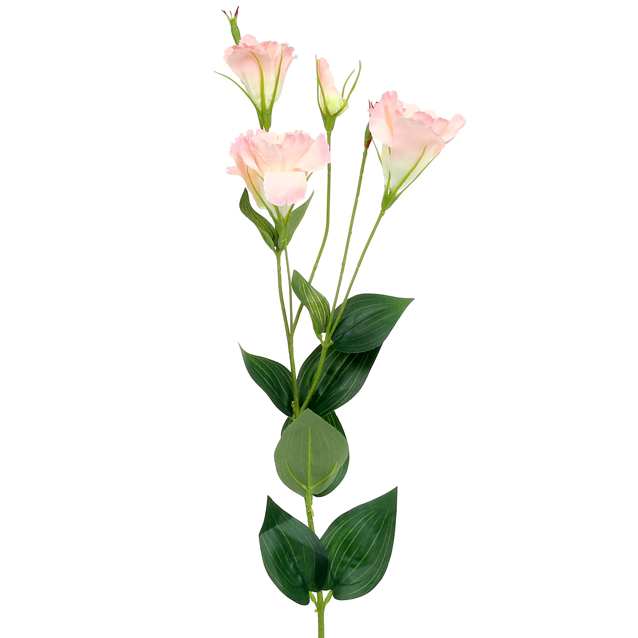 Den kunstige, rosa Lisianthus-grenen måler rundt 87,5 centimeter i lengde, mens de enkelte blomstene - med unntak av knoppen - er mellom 7,5 og 9 centimeter i størrelse.