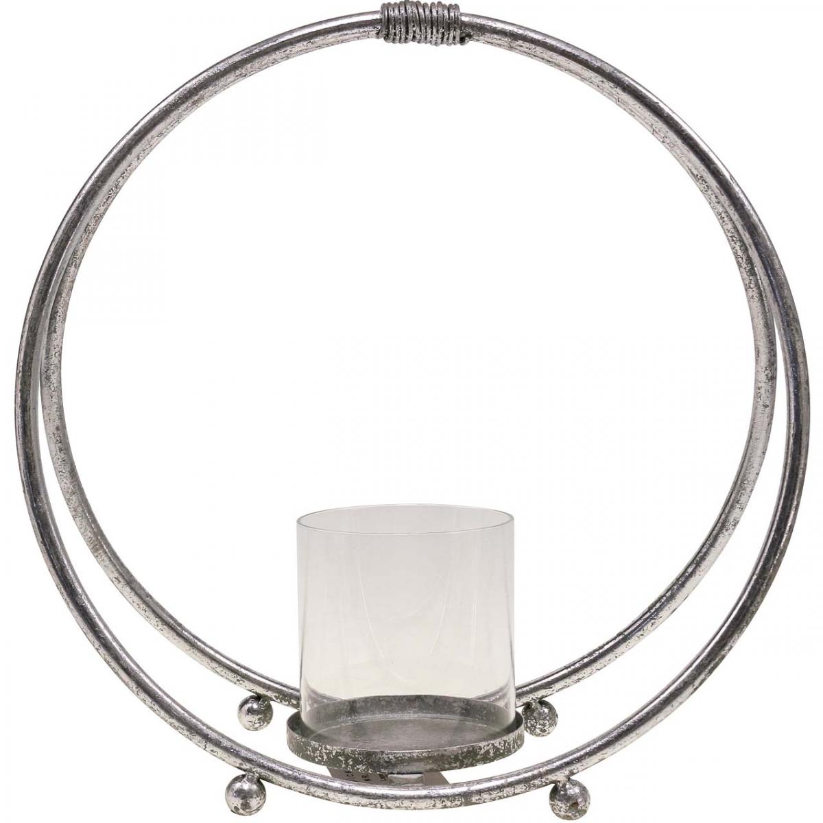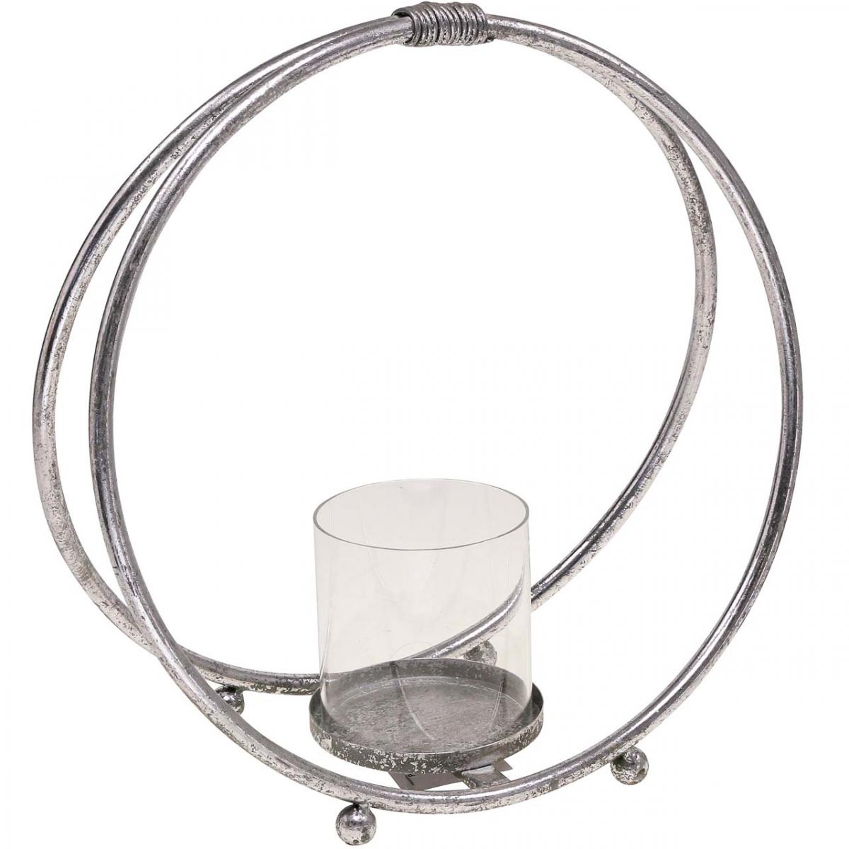 Produktnavn: Lyslykt i metall sølv glass Ø33cm