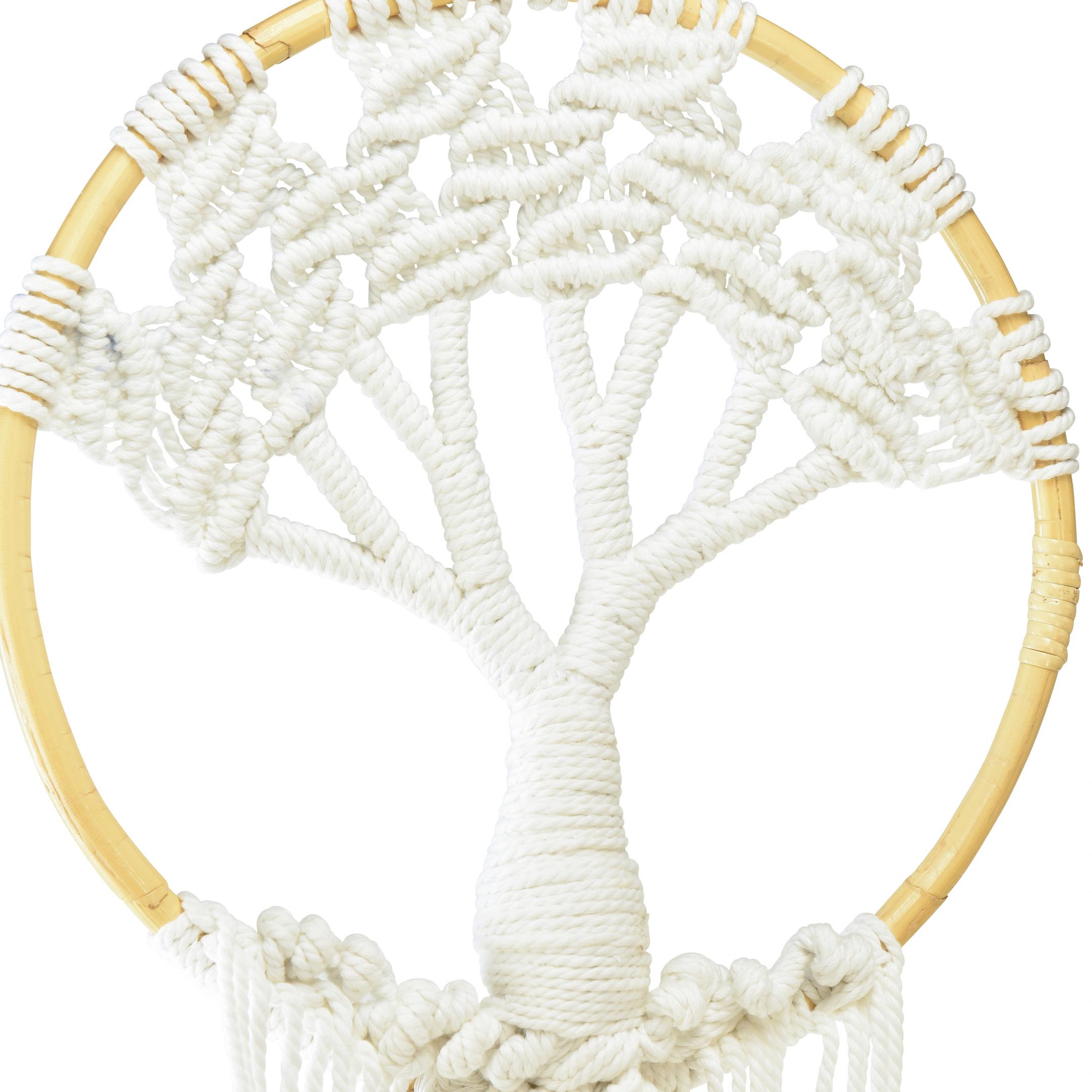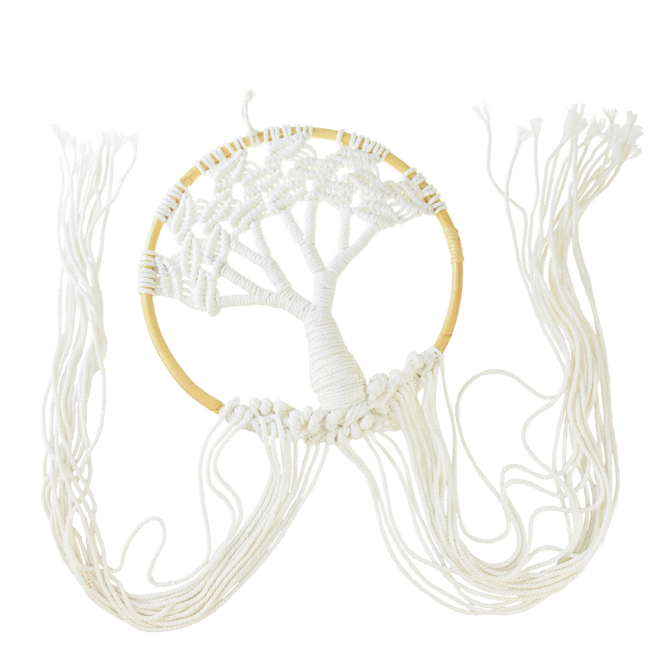 Makramé Drømmefanger Livets Tre Veggdekorasjon Boho Dekor Ø28cm H92cm Naturhvit
