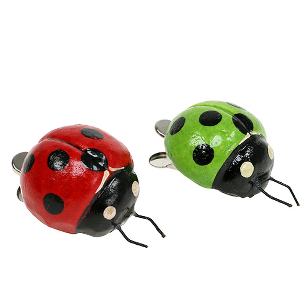 Marihøne med klips 4,5cm rød, grønn 6stk