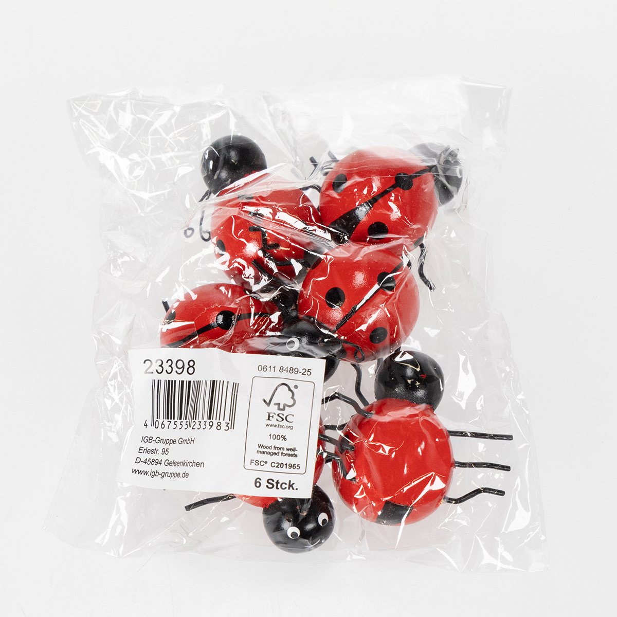 - Sett med 6 marihøner, hver 5 cm høy