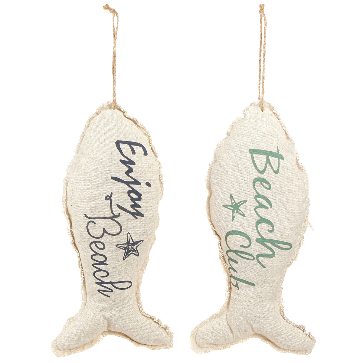Som sommerdekorasjon pynter fiskehengeren maritime dekorasjoner, gaver, vinduer og dører. Ikke bare som dekorasjon på badet, fisken, som er trykt på den ene siden i mørkeblått eller turkis med slagordet «Enjoy Beach» eller «Beach Club» og en sjøstjerne, gir deg umiddelbart sommer- og feriefølelser.