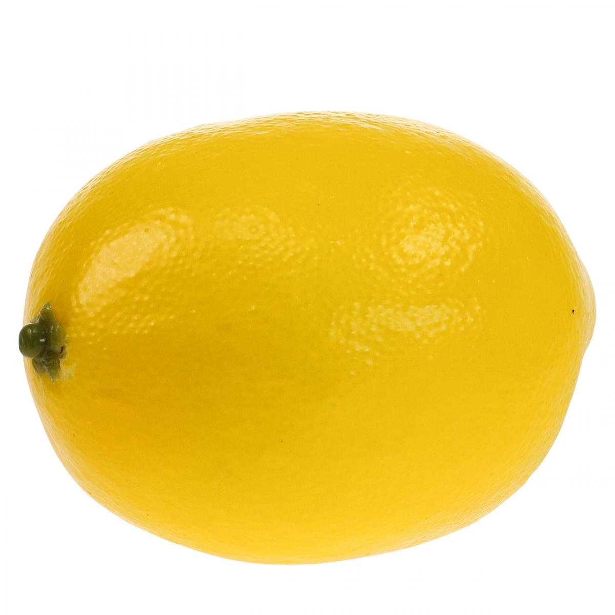 Denne kunstige sitronen som ser veldig ekte ut, har en lengde på omtrent 8 centimeter og en diameter på omtrent 5 centimeter.