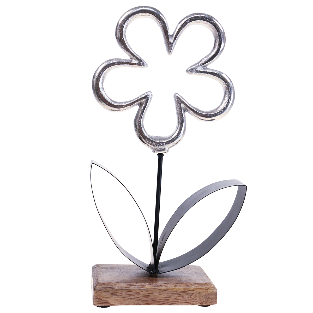 Metall blomsterdekor sølv svart bordpynt fjær H36cm