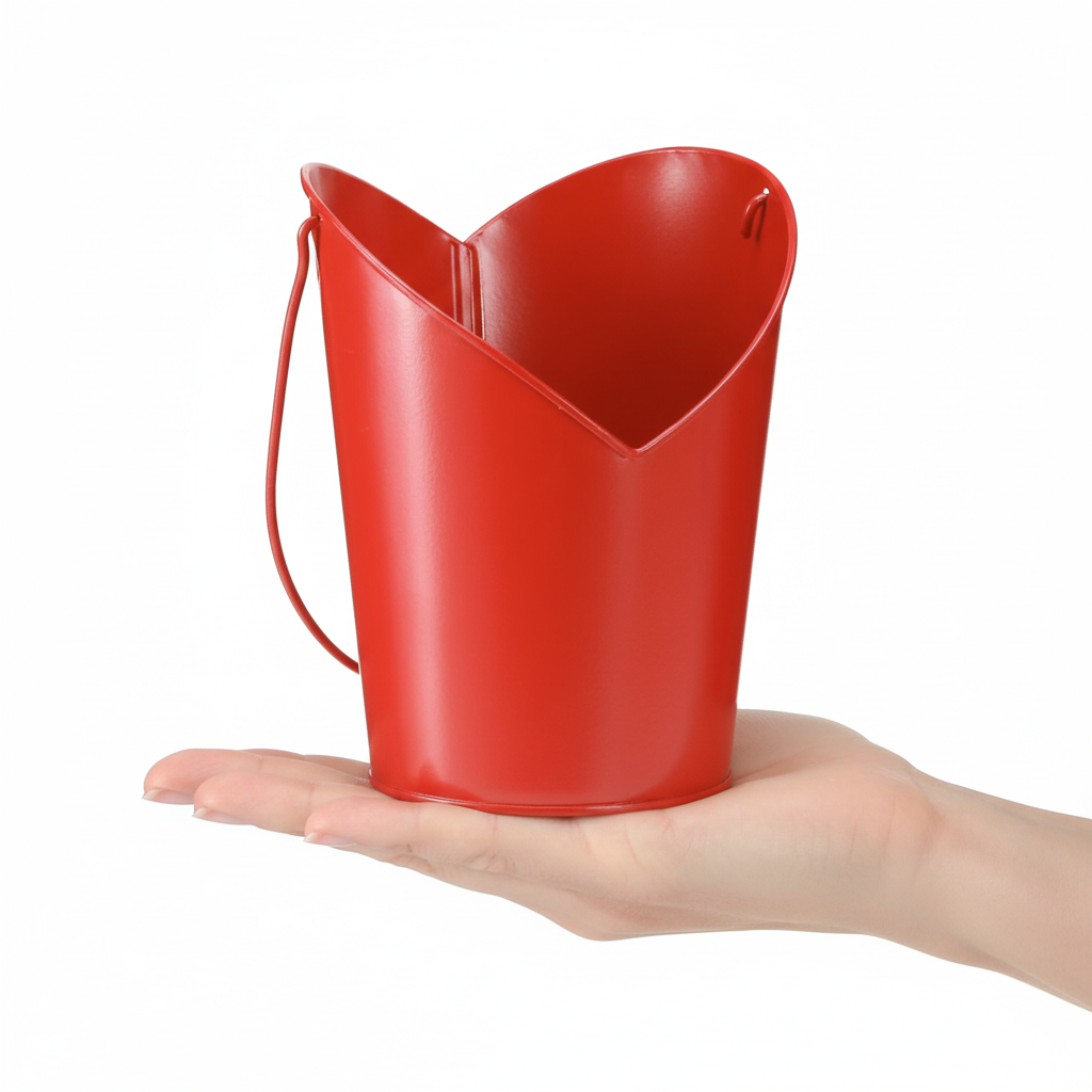 - Dekorativ plantekasse i metall som hjerte i intens rødt