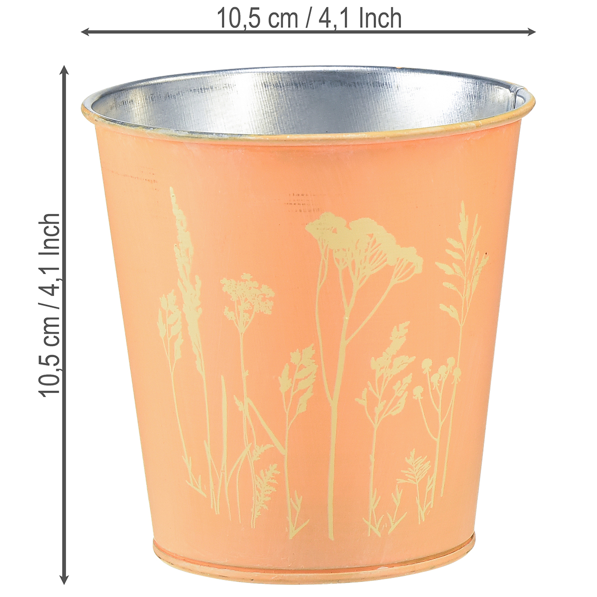 Engblomster i sommervinden - denne blomsterpotten i metall i den milde ferskenfargen slipper sommeren inn i borddekorasjonen din. Blomstene skinner gyldengule takket være den fargede plantekassen.