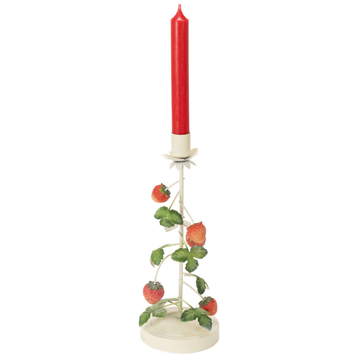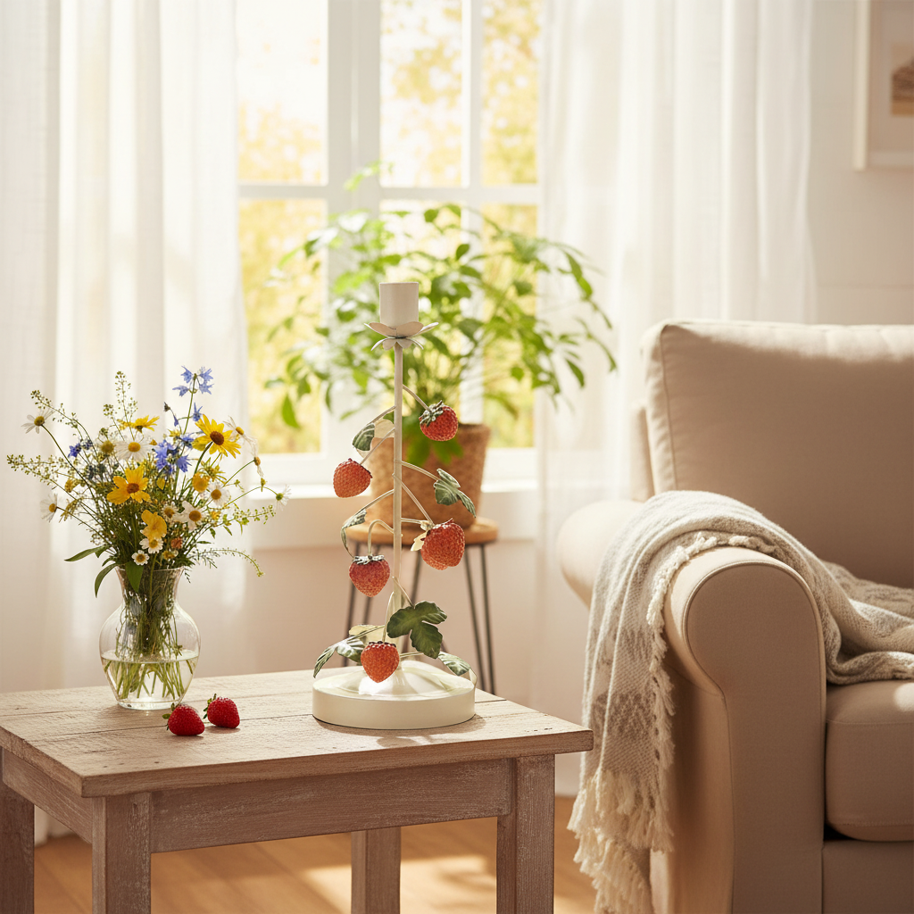 Eksklusiv lysestake i metall med jordbærdekor – ideell for sommerdekorasjonen