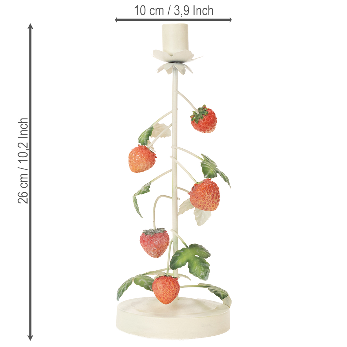 Metallkonisk lysestake med jordbærdekorasjon, kremfarget, rund, H26 cm