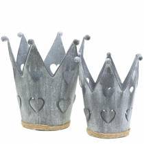 En fin dekorasjon for potteplantene dine! Denne metallpotten laget av sink har et fint mønster på forsiden, som ser ut som en fleur de lis, dvs. en stilisert lilje, og suppleres med en utstanset banderole. I forbindelse med den buede kanten på toppen ser plantepotten ut som håndlaget og passer fantastisk til et landsted eller interiør i vintage stil. Dette er en fin måte å sette en busk med tusenfryd, anemoner, columbines eller tusenfryd i potten og la den blomstre.Du kan selvfølgelig også legge en pepperplante, en aubergine eller en tomatplante i den og deretter plassere den på balkongen eller terrassen. Men også med deilige urter kutter plantepotten en elegant figur!