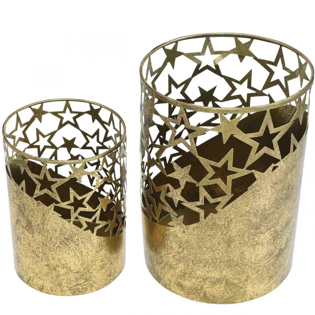 Produktnavn: Metalllykt med bladgull-look stjerner Ø15cm/20cm sett med 2
