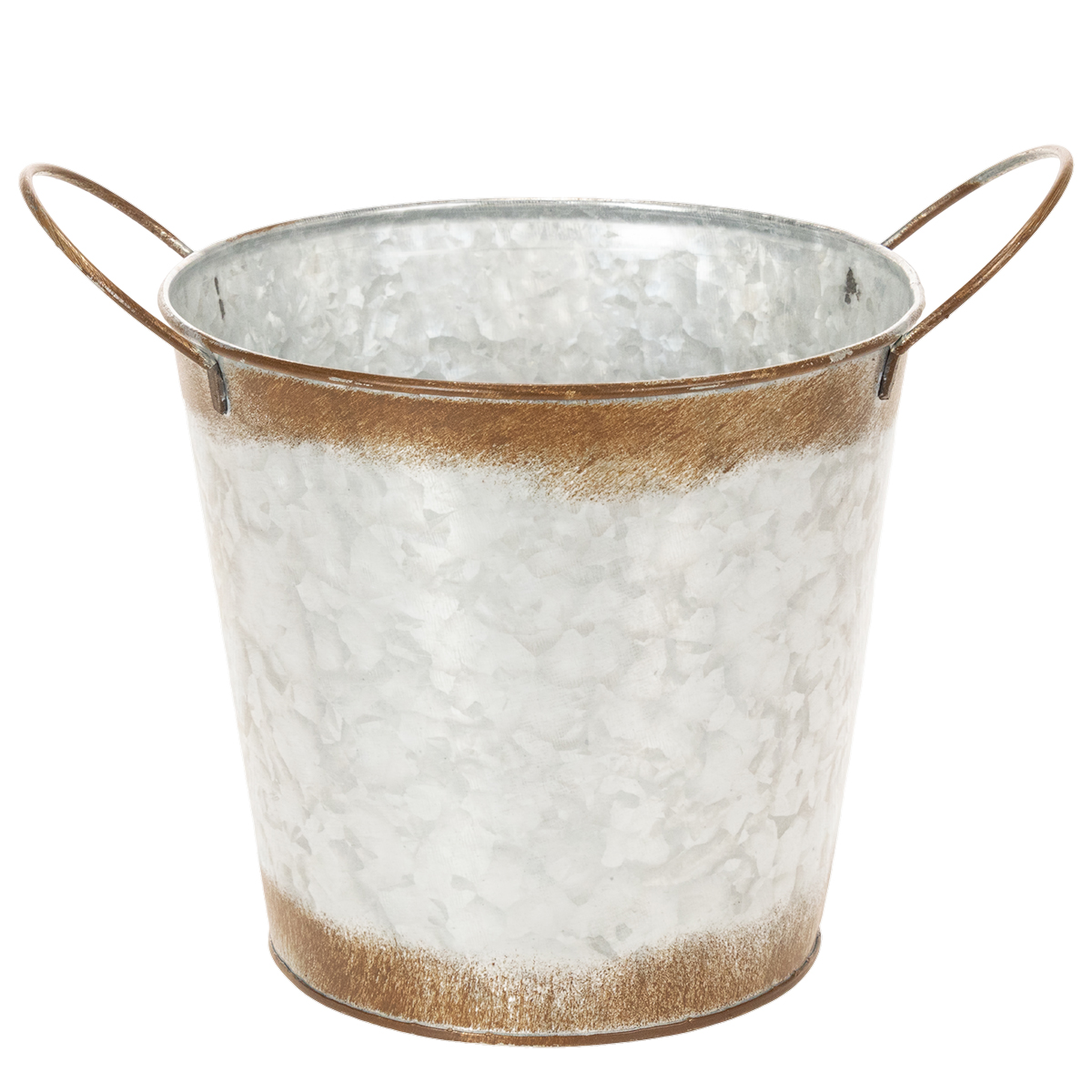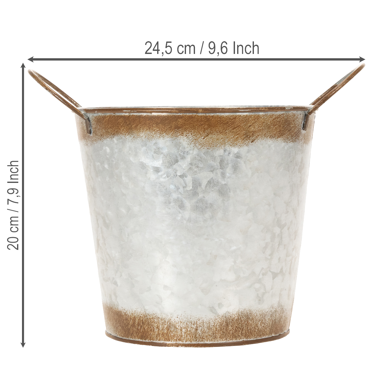 Metallplantekasse, blomsterskål, blomsterpotte med sølvhåndtak, forvitret stålfinish, Ø18 cm H20 cm