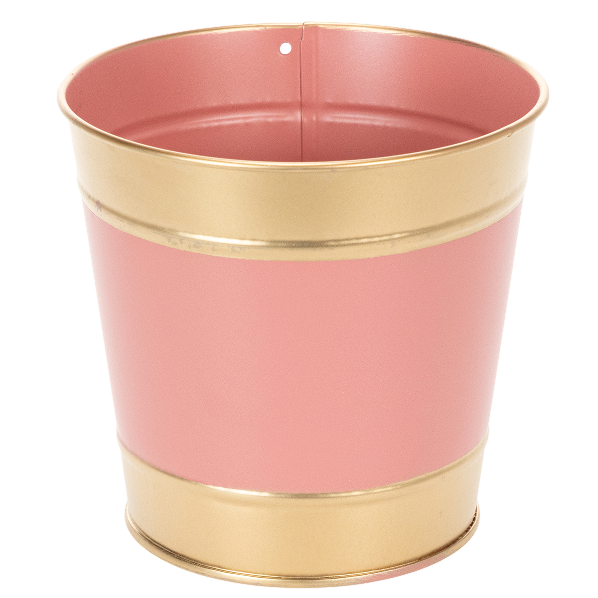 Plantekassen har form som en typisk tinnbøtte med en ekstra gyllen kant øverst og nederst. I midten er det en stripe i en av de fire fargene brun, beige, rosa og fersken. Settet på fire er fargekoordinert og kan settes så flott sammen, for eksempel på en blomstersokkel.