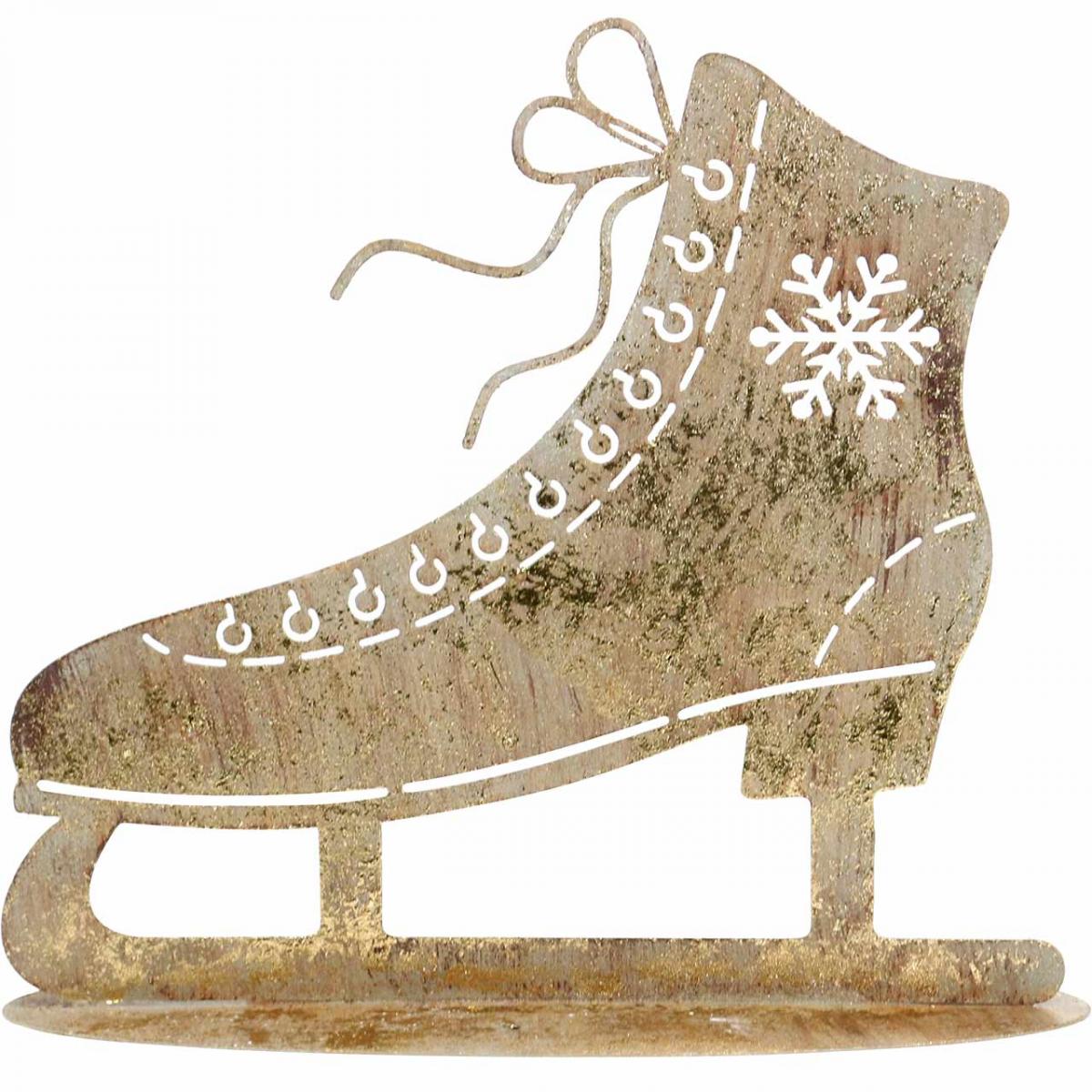 Metallskøyte, vinterdekorasjon, dekorativ skøyte, julens gyldne antikklook H22,5cm