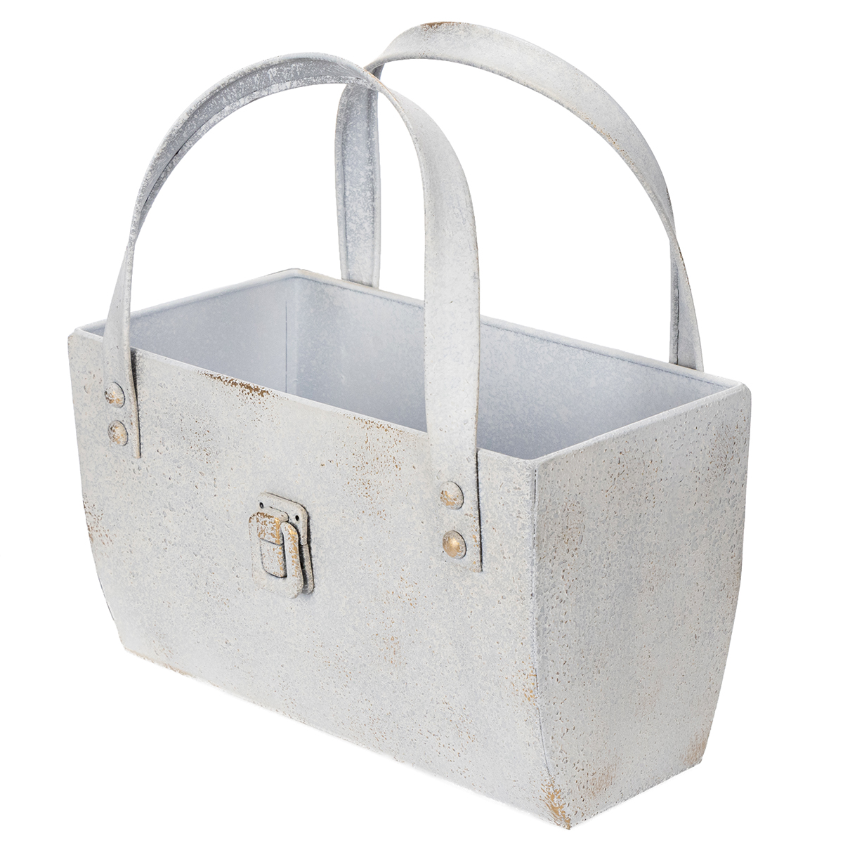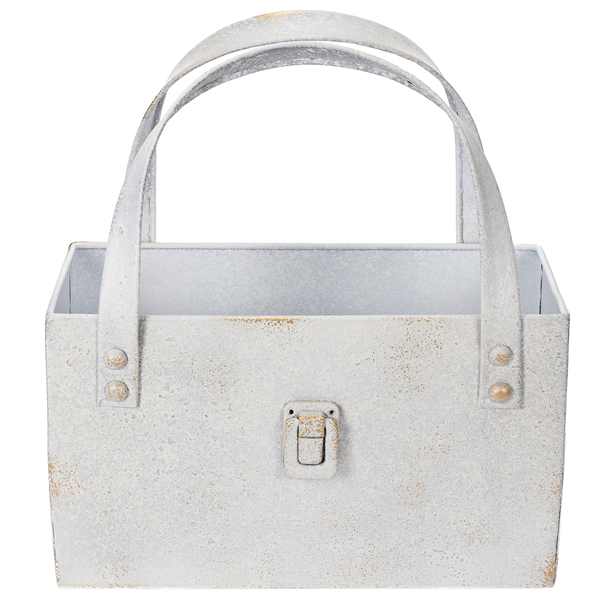 Denne metallvesken kombinerer moderne design med tidløs, rustikk sjarm. Det robuste håndtaket gjør den ikke bare enkel å bære, men også et skikkelig blikkfang. Den litt eldre, vintage-stilen gir et spesielt stilig preg og passer vakkert inn i en rekke interiørstiler, fra landlig til industrielt. Vil du bruke denne dekorative metallvesken som en blomsterkasse? Ikke noe problem! Den er ideell for stilig fremvisning av små blomsteroppsatser eller sukkulenter. Sesongdekorasjoner, som høstdekorasjoner med gresskar eller et juleoppsett fylt med grangrener, ser også fantastiske ut i denne vesken. Like praktisk: Bruk vesken som en arrangør for hageredskaper som saks eller hansker. Dette holder alt innen rekkevidde og ser attraktivt ut. Den nøytrale, matte gråfargen komplementerer nesten ethvert miljø og harmonerer fantastisk med andre dekorative elementer. Kombiner for eksempel metallvesken med våre enkle glassvaser eller rustikke treskåler fra Floristik24 for å skape enda mer harmoni i innredningen din. En ekte allrounder!