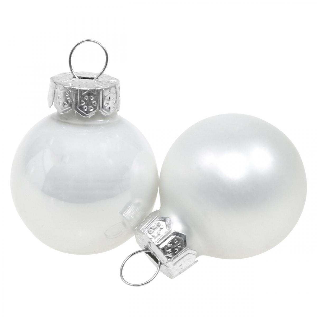 Mini julekuler glass hvit blank/matt Ø2,5 cm 22 stk