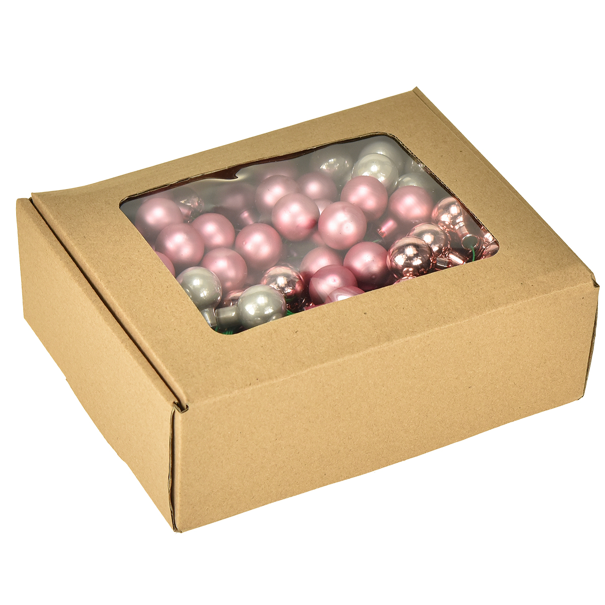 Mini julekuler glass speil bær rosa krem Ø20mm 140 stk