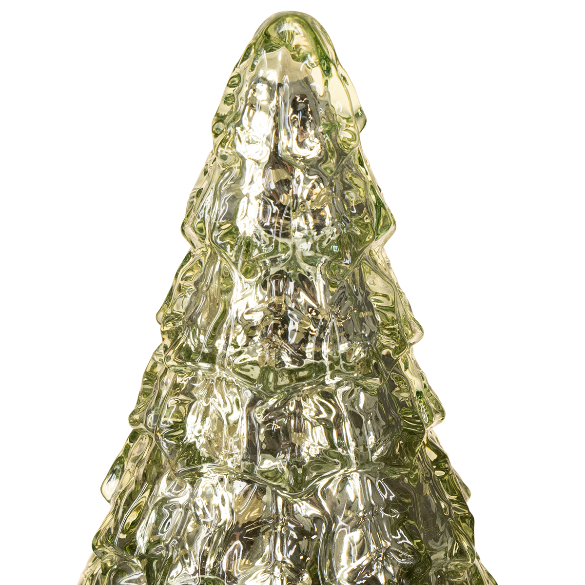 Det sølvgrønne glasset med gylne flekker og myke lysrefleksjoner gir treet et sjarmerende vintage-utseende. Med en høyde på omtrent 28 cm og en solid plastbase med batterirom kan det fleksibelt og enkelt plasseres hvor som helst som borddekorasjon. Elegant, glamorøst og stemningsfullt – dette LED-juletreet bringer julestemning til hjemmet ditt og vil lyse opp ethvert rom.