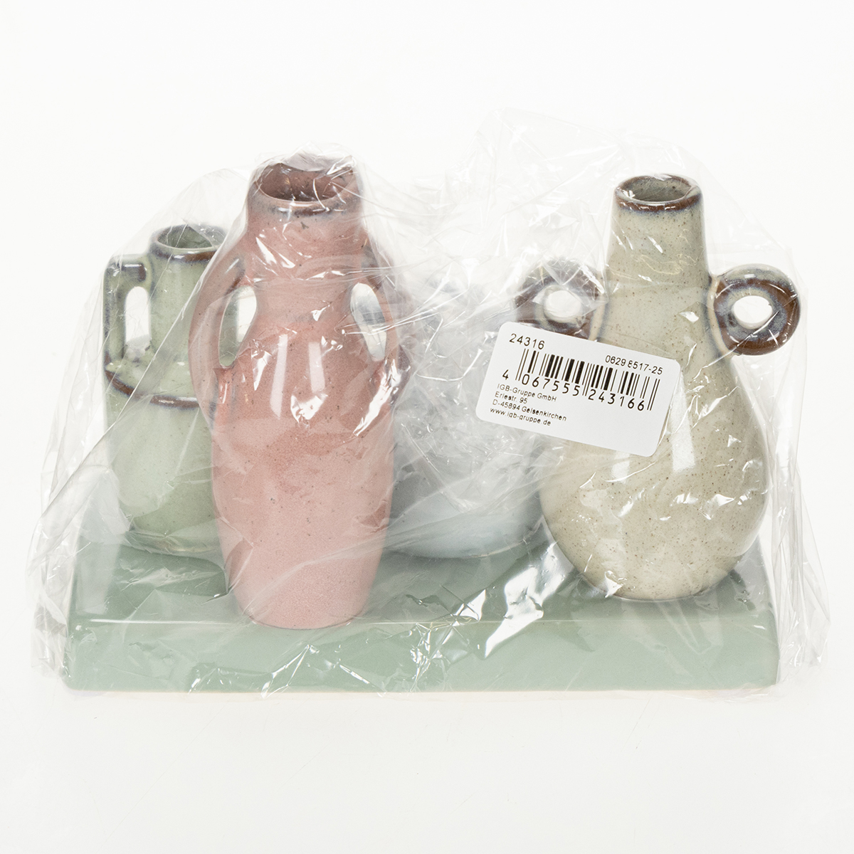 Hvor mye sjarm kan et lite tilbehør utstråle? Helt utrolig! Dette mini-vasesettet i keramikk bringer ikke bare praktisk funksjonalitet, men fremfor alt ren eleganse og hygge til hjemmet ditt. Enten du vil forskjønne spisestuen eller skape en stilig aksent i stuen – disse små vasene er ekte allroundere. Den harmoniske fargepaletten i rosa, grønt og hvitt passer uanstrengt inn i ulike interiørstiler og skaper en atmosfære som føles tidløst moderne. Kanskje du ønsker å dekorere soverommet ditt forsiktig med delikate blomsterdetaljer? Takket være den kompakte størrelsen passer settet også perfekt på et nattbord eller i vinduskarmen. Gjør deg klar for et virkelig høydepunkt i hjemmeinnredningen din som er både minimalistisk og dekorativt.