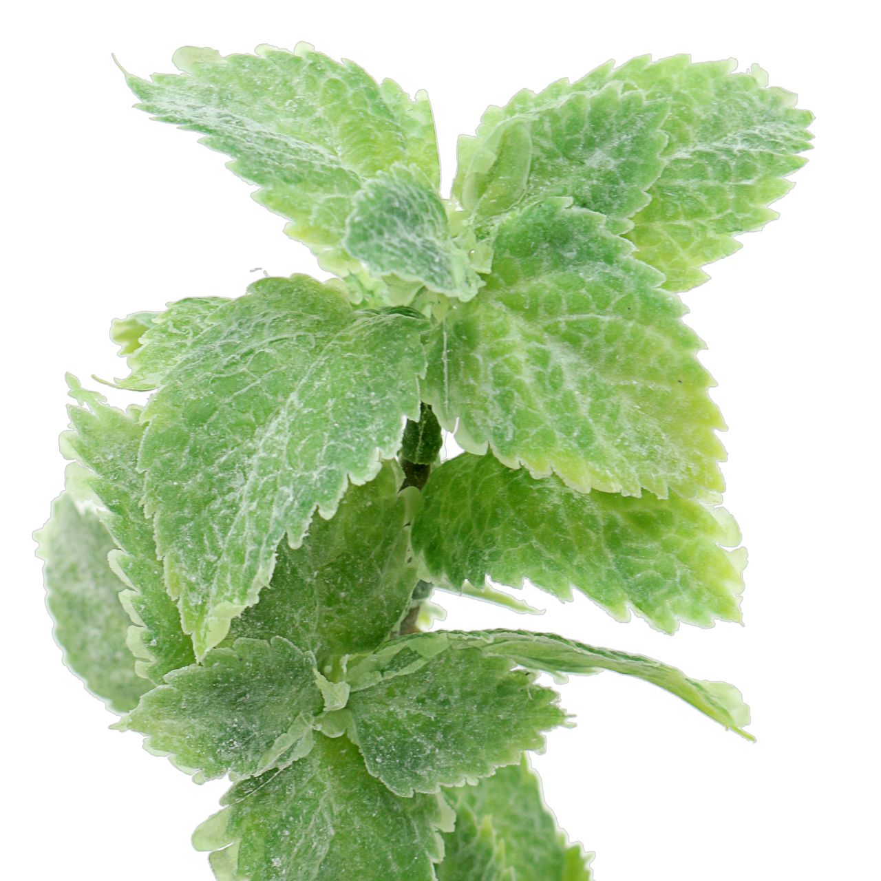 Takket være behandling av høy kvalitet laget av plast, er den kunstige dekorative mynten veldig hygienisk, holdbar og krever ikke noe vedlikehold. Den er derfor ideell for dekorering av restauranter, salgsdisker eller utstillinger. Du kan ganske enkelt plassere staudene dekorativt i benken med dine friske tilbud og dermed gi gjestene et appetittvekkende inntrykk av varene dine. Dekorative urter er også en god ide å lage en stilig borddekorasjon.