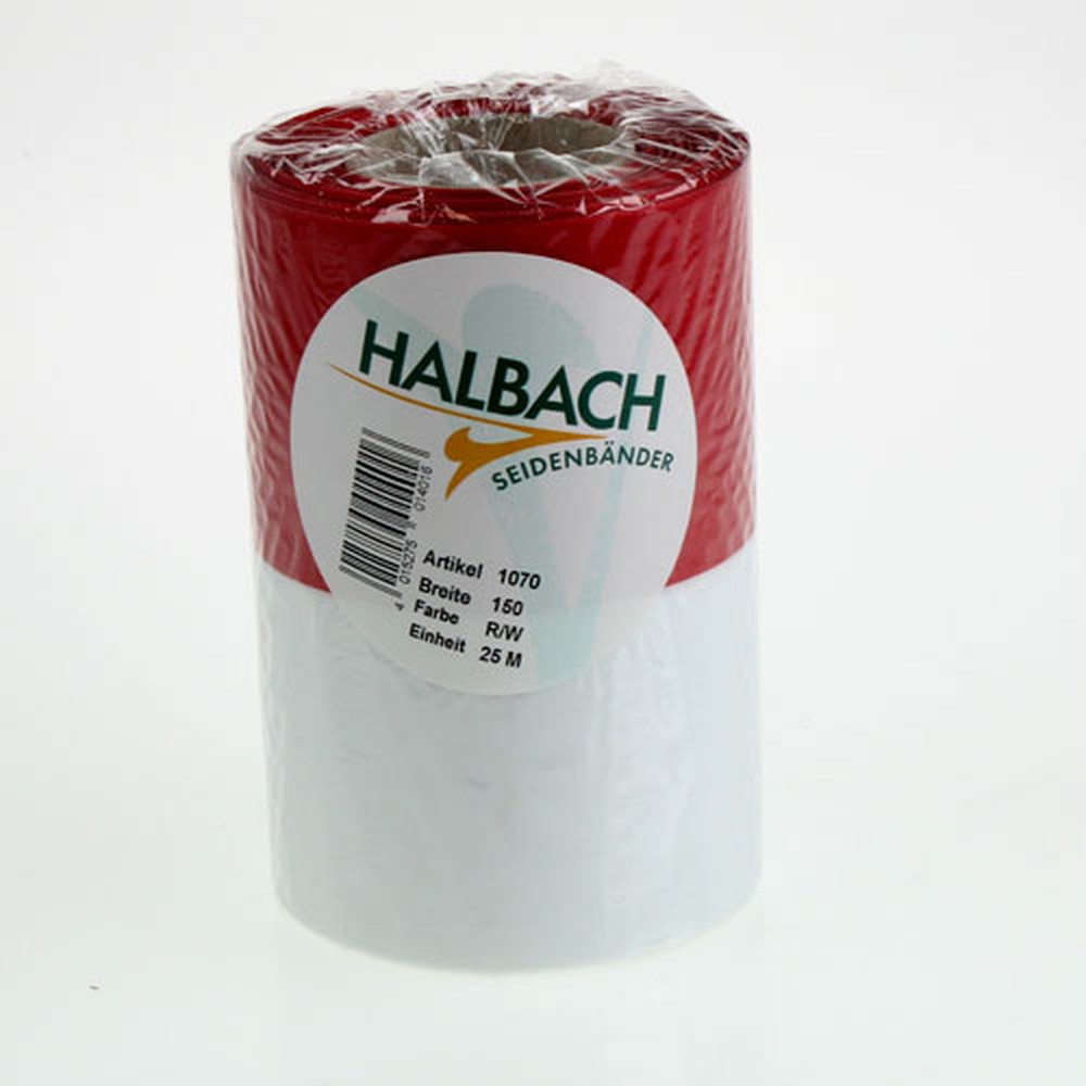Produktnavn: Moiré-kransbånd, sørgebånd hvitt-rødt, dekorativt bånd 150 mm, minnebånd fleur-sorgebånd, acetattaft 25 m