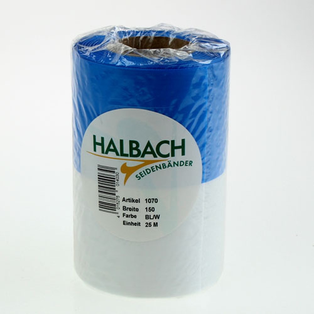 Produktnavn: Moiréblå og hvite kransebånd, 150 mm