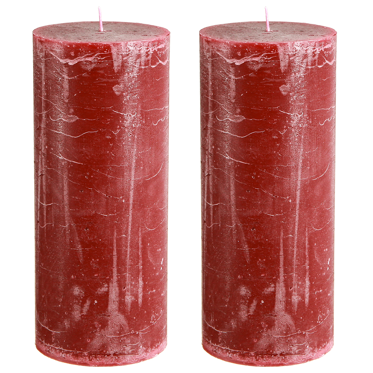 Produktnavn: Mørkerøde kuppellys med marmorutseende, 85x200mm, sett med 2 – lang brennetid for romantikk og festlighet