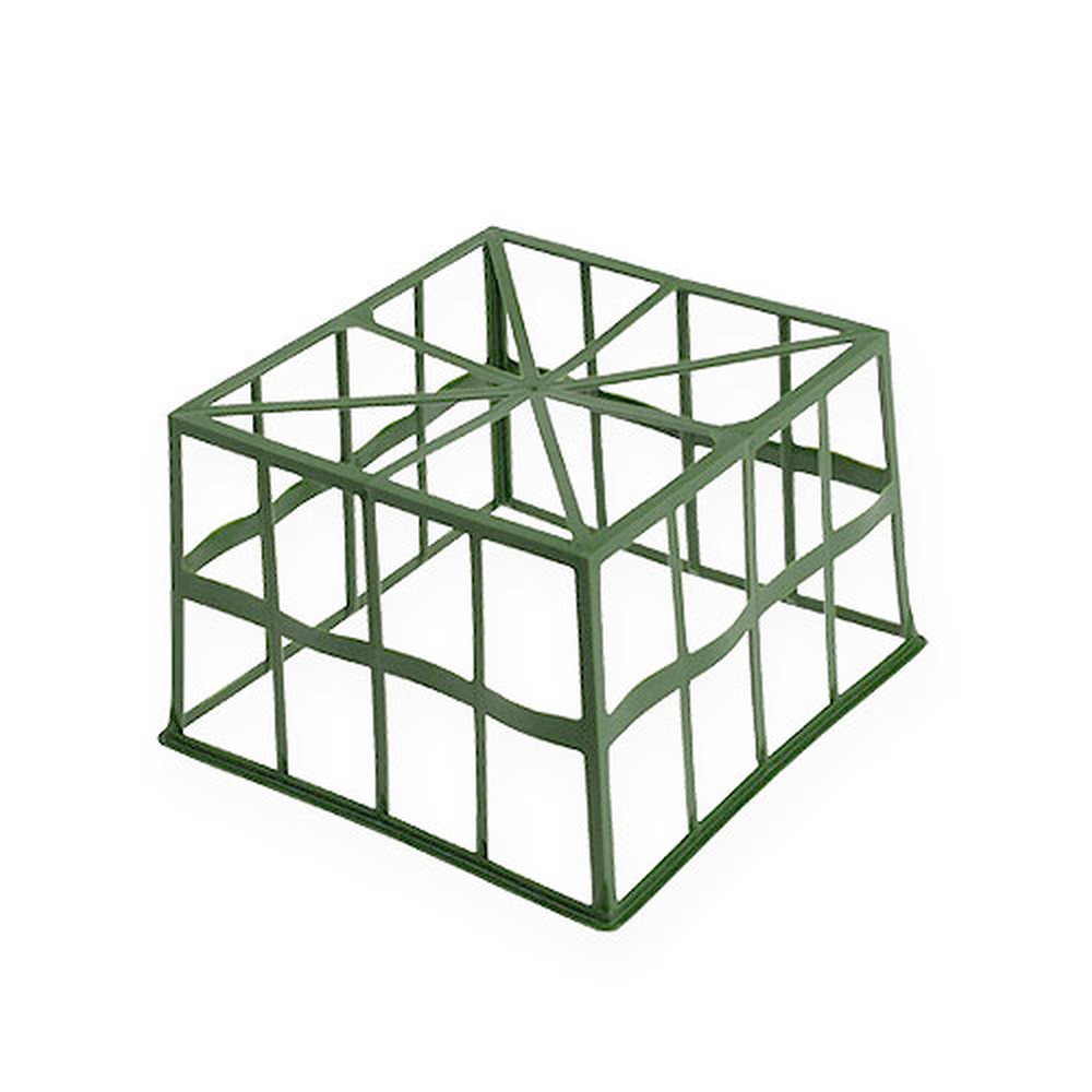 Med det floristiske rutenettet kan du også holde blomsterskummet i form når det er dynket med vann, slik at du kan stikke friske roser der inne og deretter knytte dem til risten med blomstertråd. På grunn av den grønne fargen harmonerer plug-in-nettet med både skummet og ferskskåret grønt og passer dermed diskret inn i det samlede arbeidet.