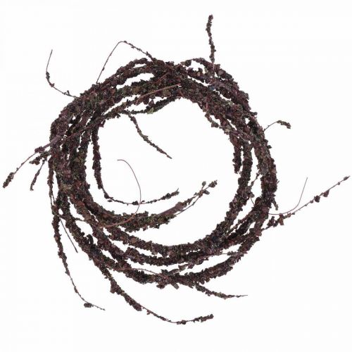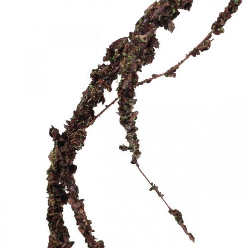 Moskransen i brunt kommer rullet opp i en pose og kan lett trekkes fra hverandre. Mosedekorasjonen kan rulles ut til en total lengde på omtrent 180 centimeter.