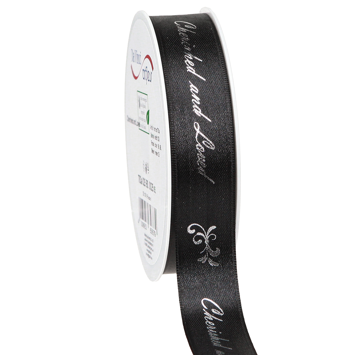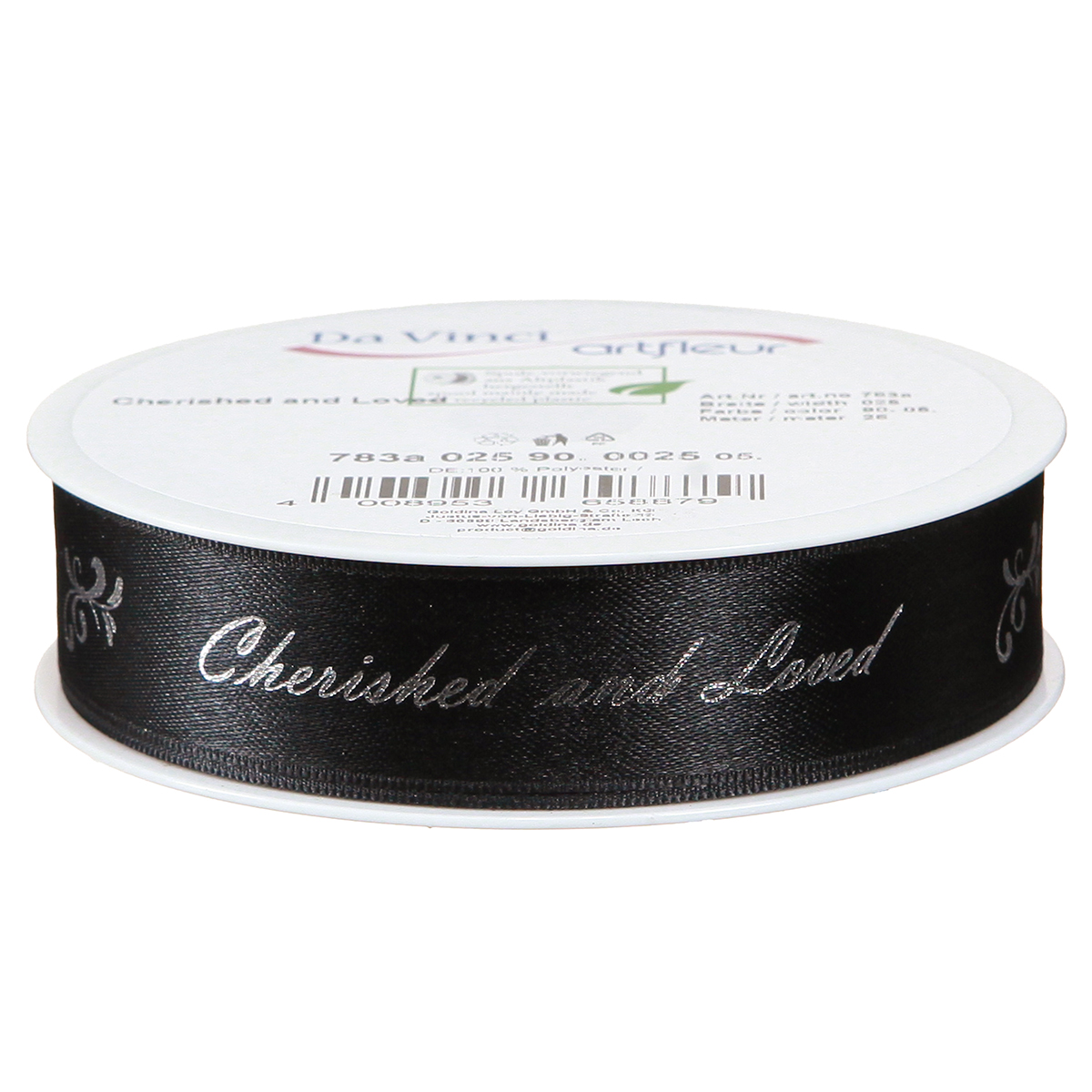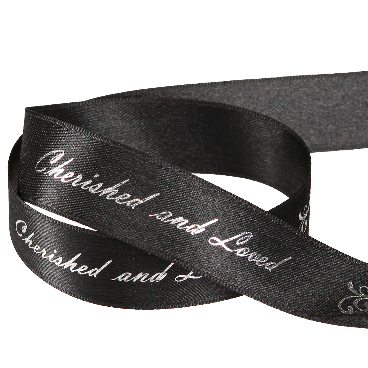Produktnavn: Mourning Ribbon Saying Black Silver Cherished… 25mm 25m