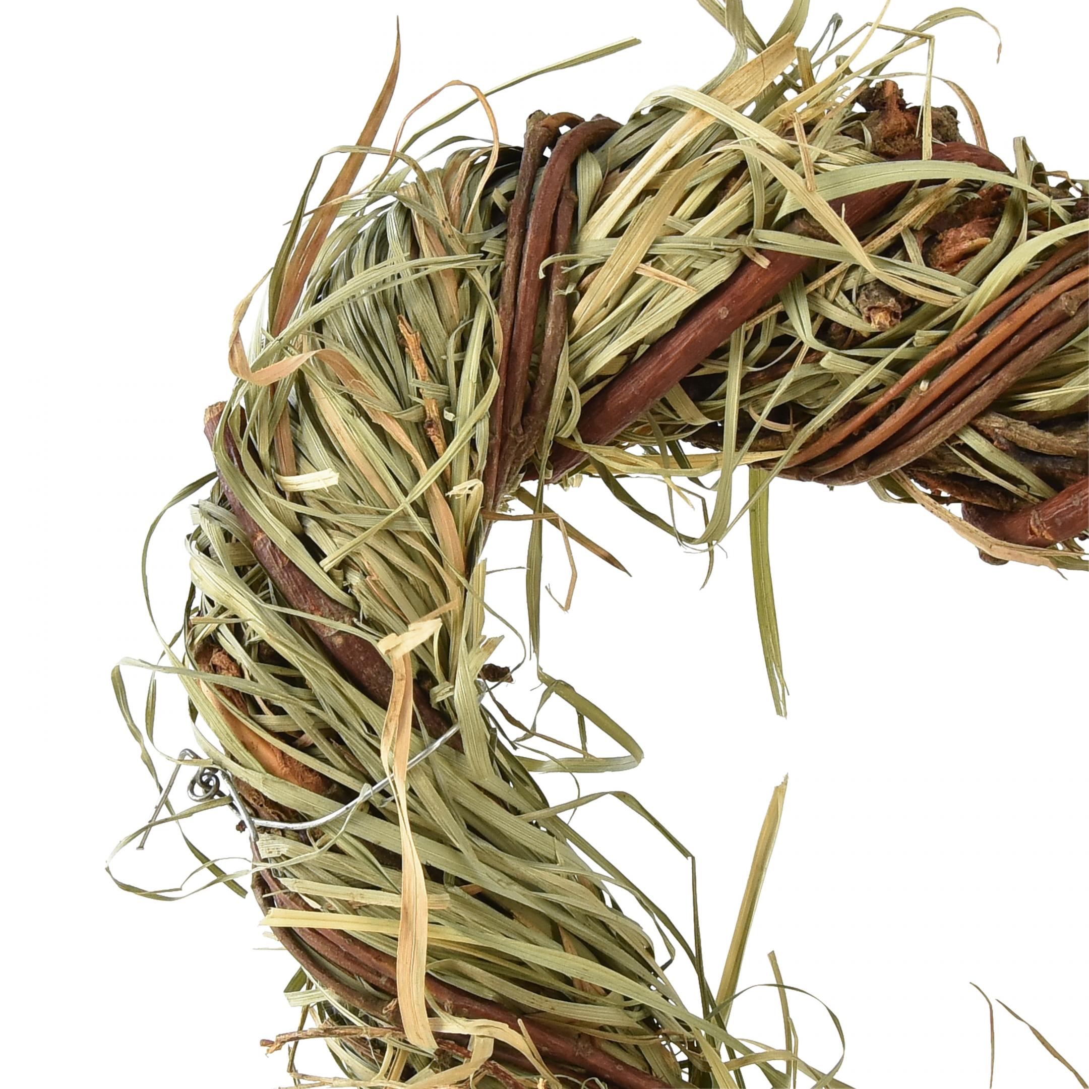 Kransen består av vingrener og gresstrå som er viklet sammen til en ring. Dette skaper et bølgemønster i kanten, vekslende mellom brunt og grønt.