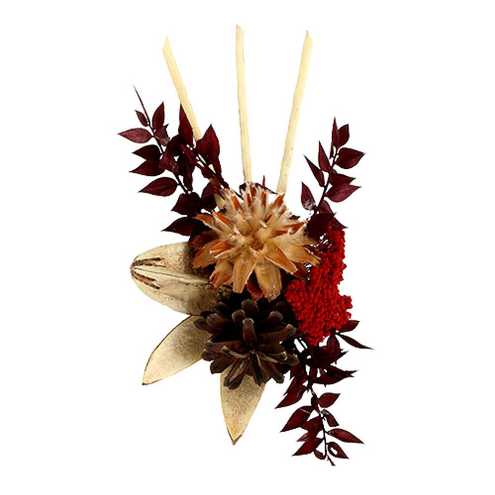 Materiale: Proteas, kjegler, tørkede blomster, faddere