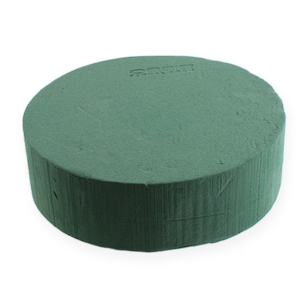 De flate ideelle sylindrene laget av OASIS® våtpinneskum av høy kvalitet leveres i et sett med 2 og kan kuttes i størrelse og formes om nødvendig. Sylindrene har en diameter på omtrent 22 centimeter og en høyde på omtrent 6,8 centimeter.