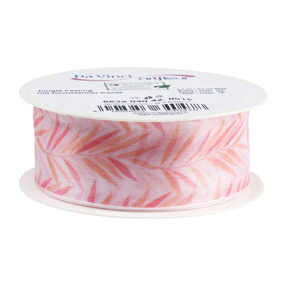 I oransje og rødt ser bladene på båndet brennende og eksotiske ut og gir spennende farger til dekorasjoner og gaver. Det delikate utseendet til chiffonbåndet er skapt av det gjennomsiktige organzastoffet. Dimensjonsstabile kanter sørger for at buer holder seg akkurat slik du vil ha dem.