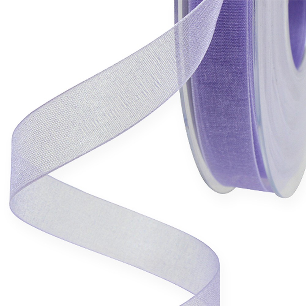 Organzabåndet med selvkant i lys lilla er rundt 50 meter viklet på en plastrull som også kan settes på en standard dispenser. Bredden er ca 15 millimeter.