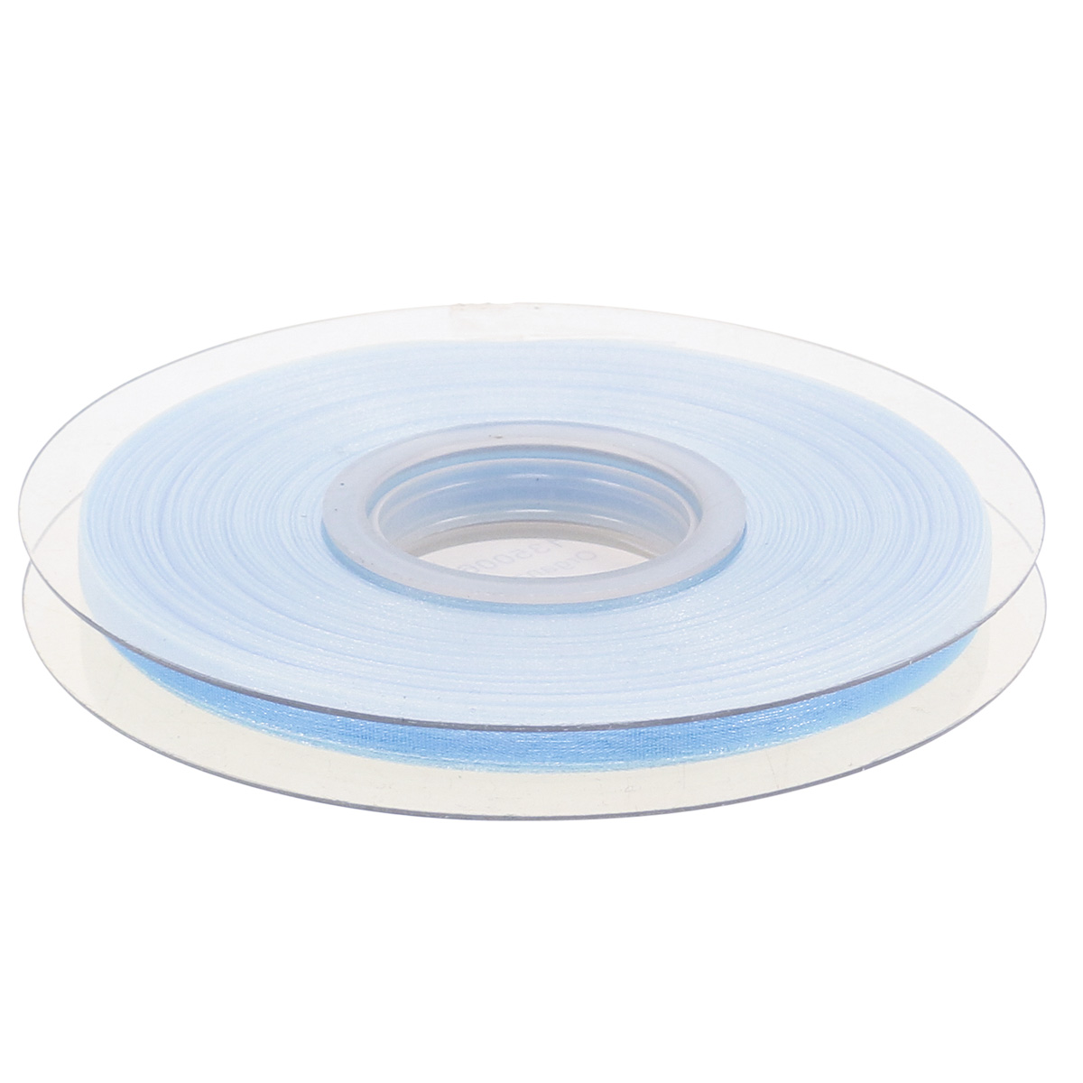 Organza bånd gavebånd lyseblått bånd blå kant 6mm 50m