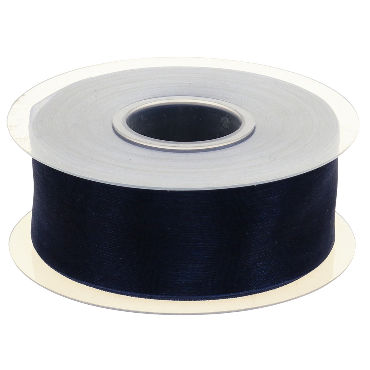 Organza bånd gavebånd mørkeblått bånd blå kant 40mm 50m