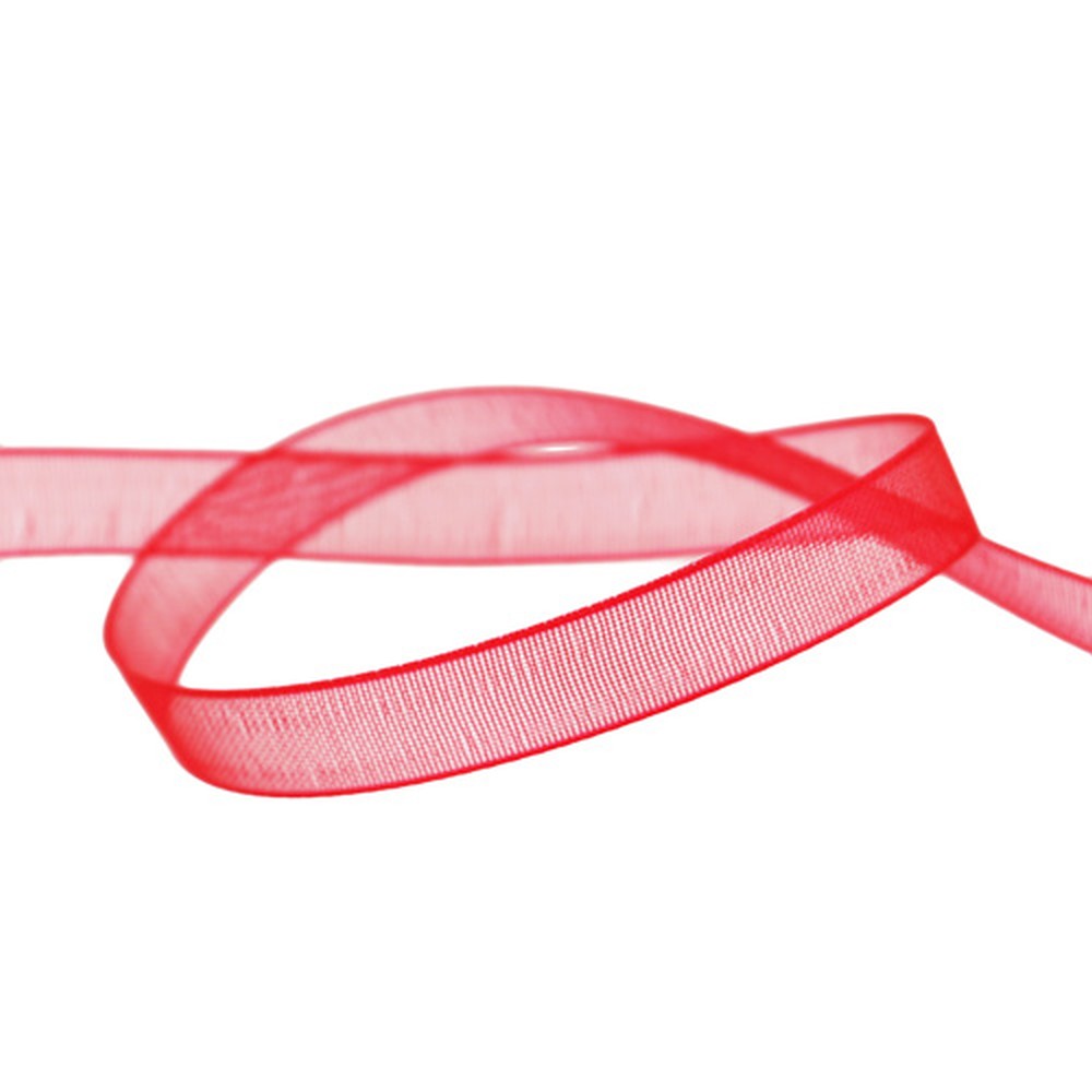 Organza bånd med kant rød 7mm 50m
