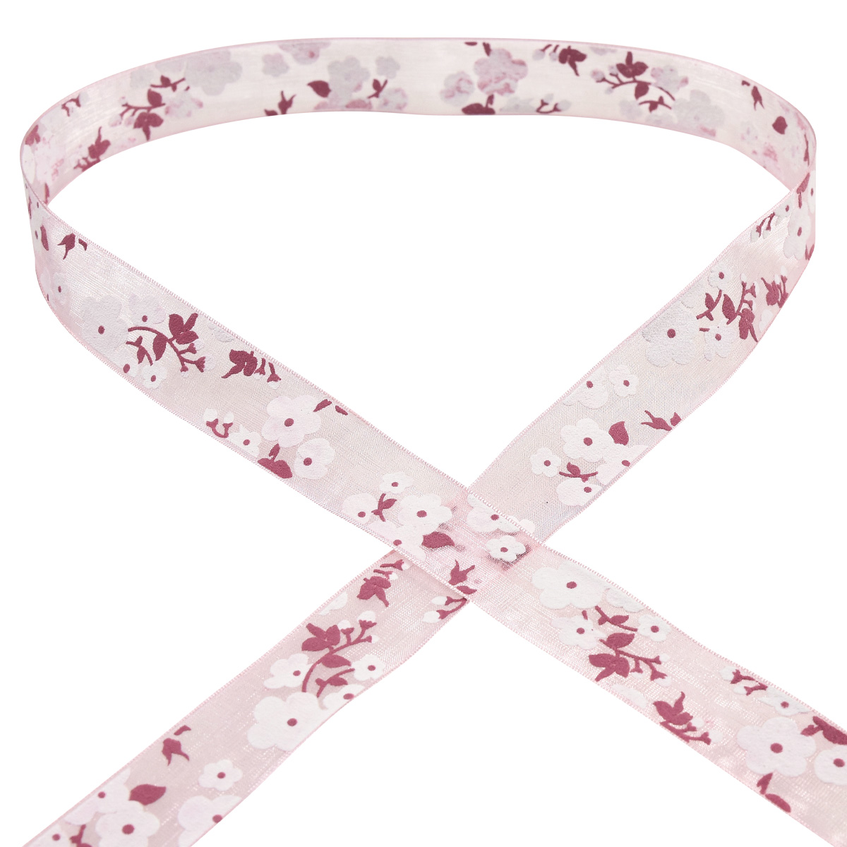Produktnavn: Organza bånd rosa med blomster gavebånd 20mm 20m