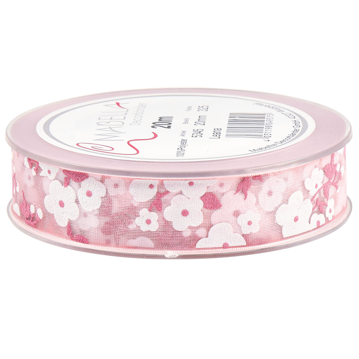 Organza bånd rosa med blomster gavebånd 20mm 20m