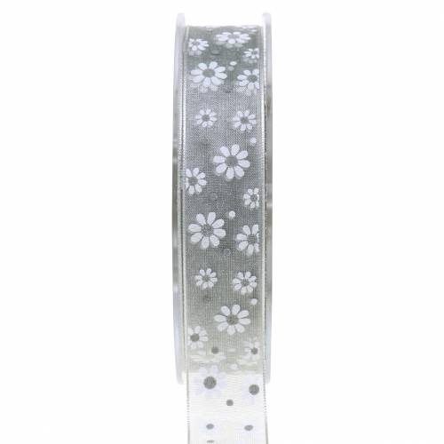 Organzabånd blomster grå 20mm 20m