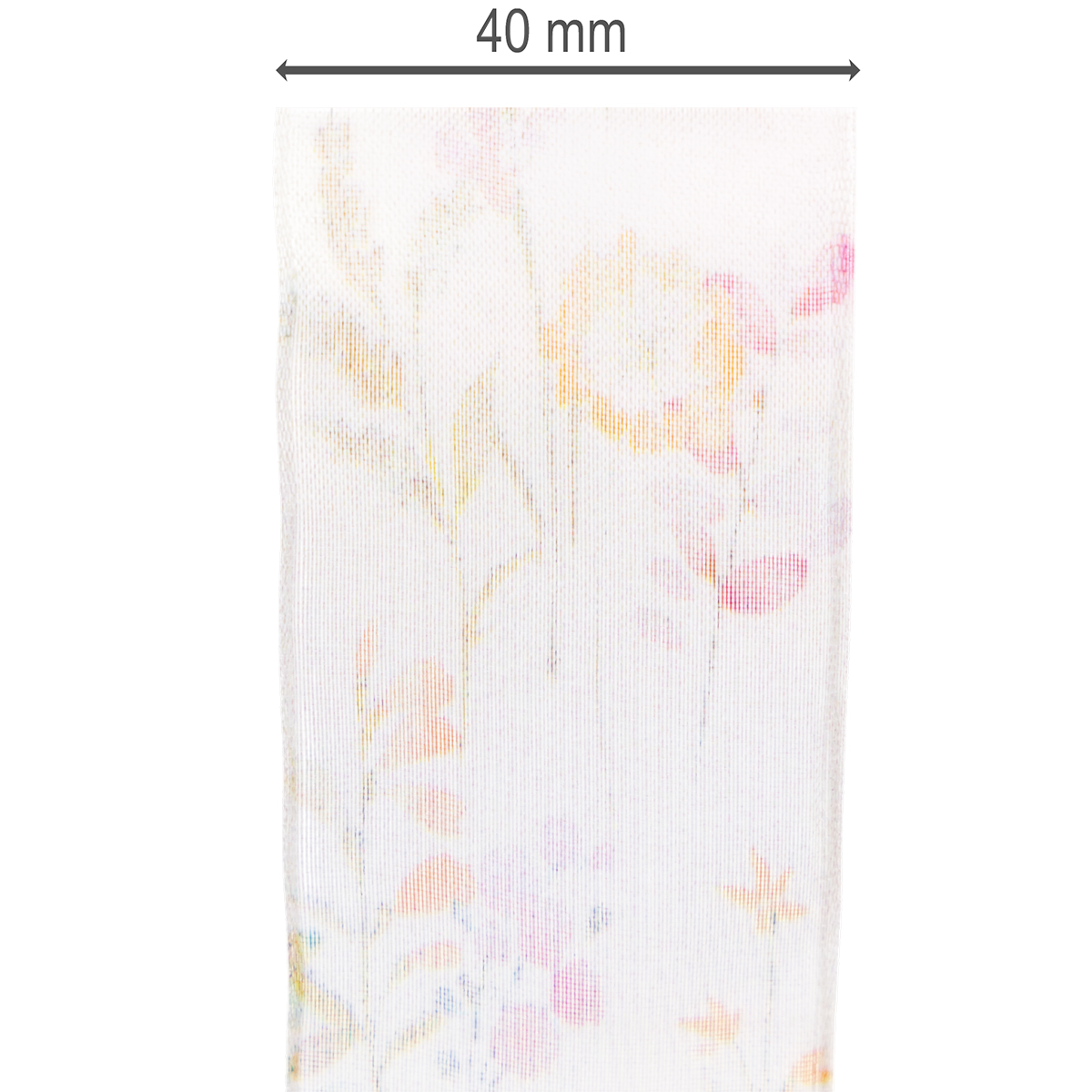 Organzabånd, chiffonbånd, blomstermønster, oransje/rosa, 40 mm, 15 m