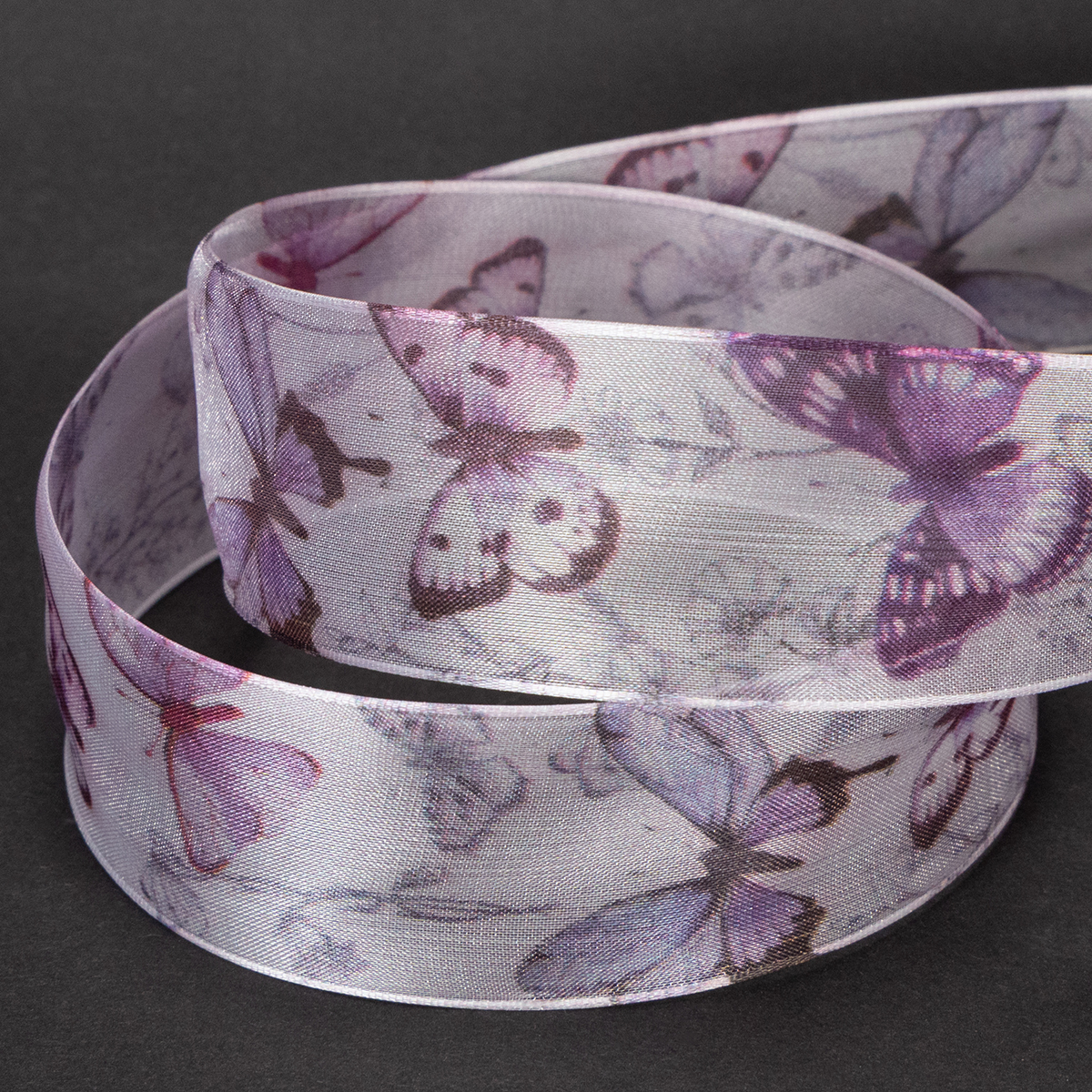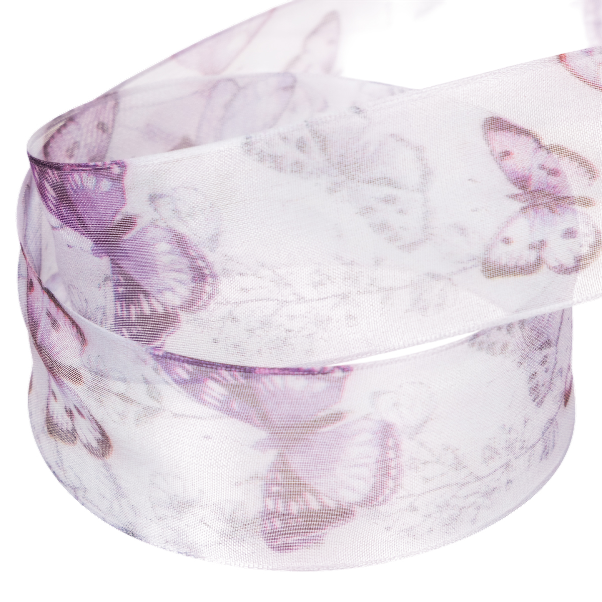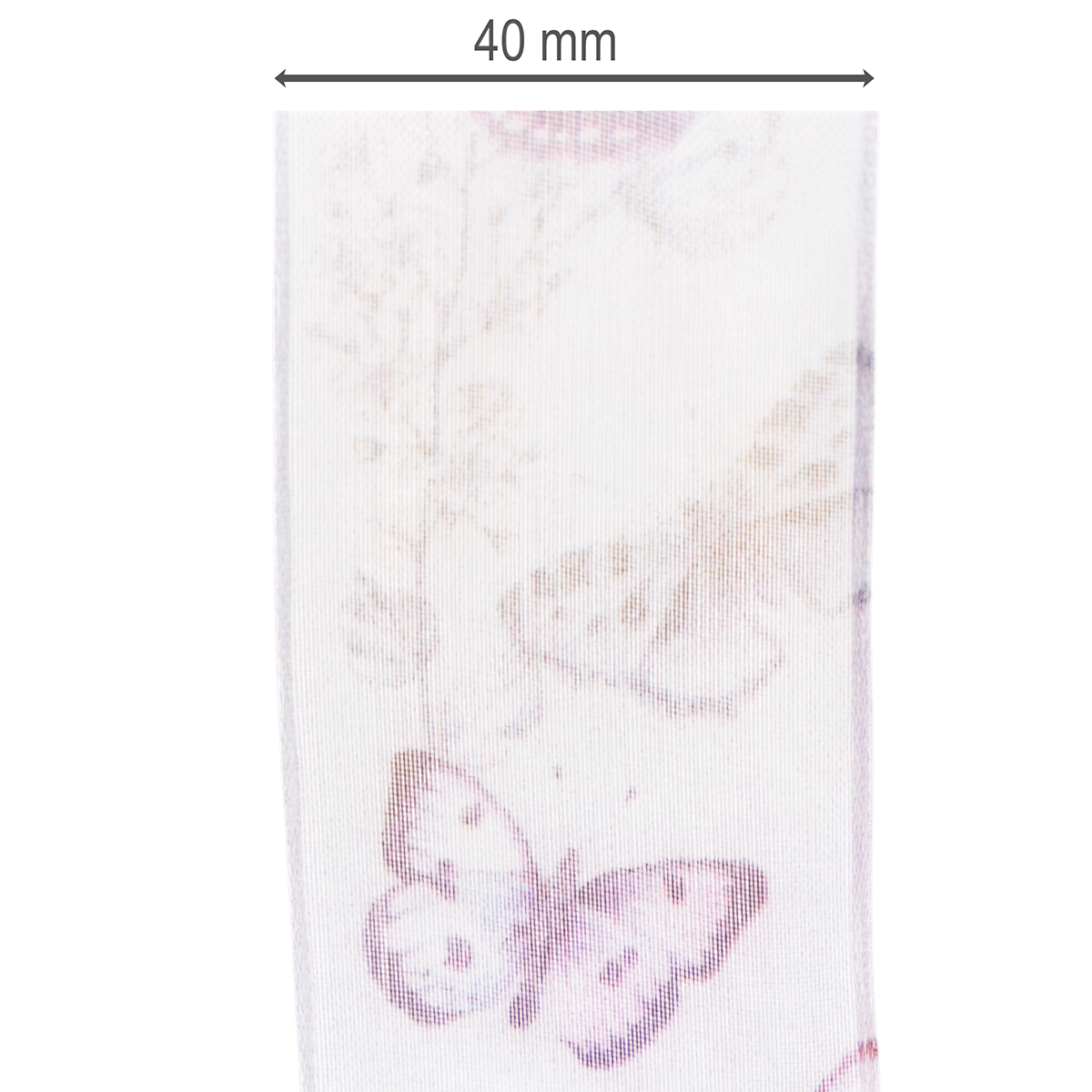Organzabånd, chiffonbånd, sommerfugler, lilla, 40 mm, 18 m