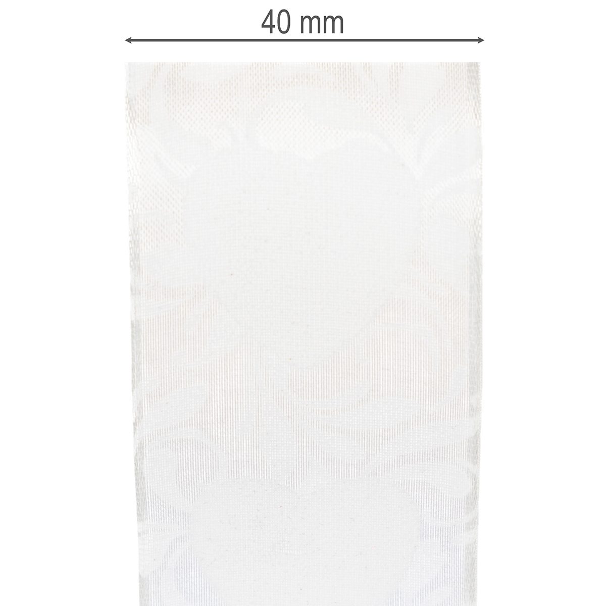 Organzabånd, kremfarget, dekorativt bånd med hjerter, 40 mm bredt, 15 m langt